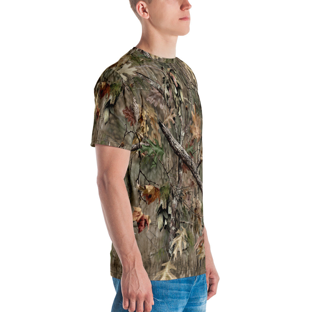 Broken Oak Camo design. This premium quality T-Shirt is made of smooth, comfortable cotton-touch polyester that will not fade from washing. Each tshirt is sublimation printed, cut, and hand-sewn.