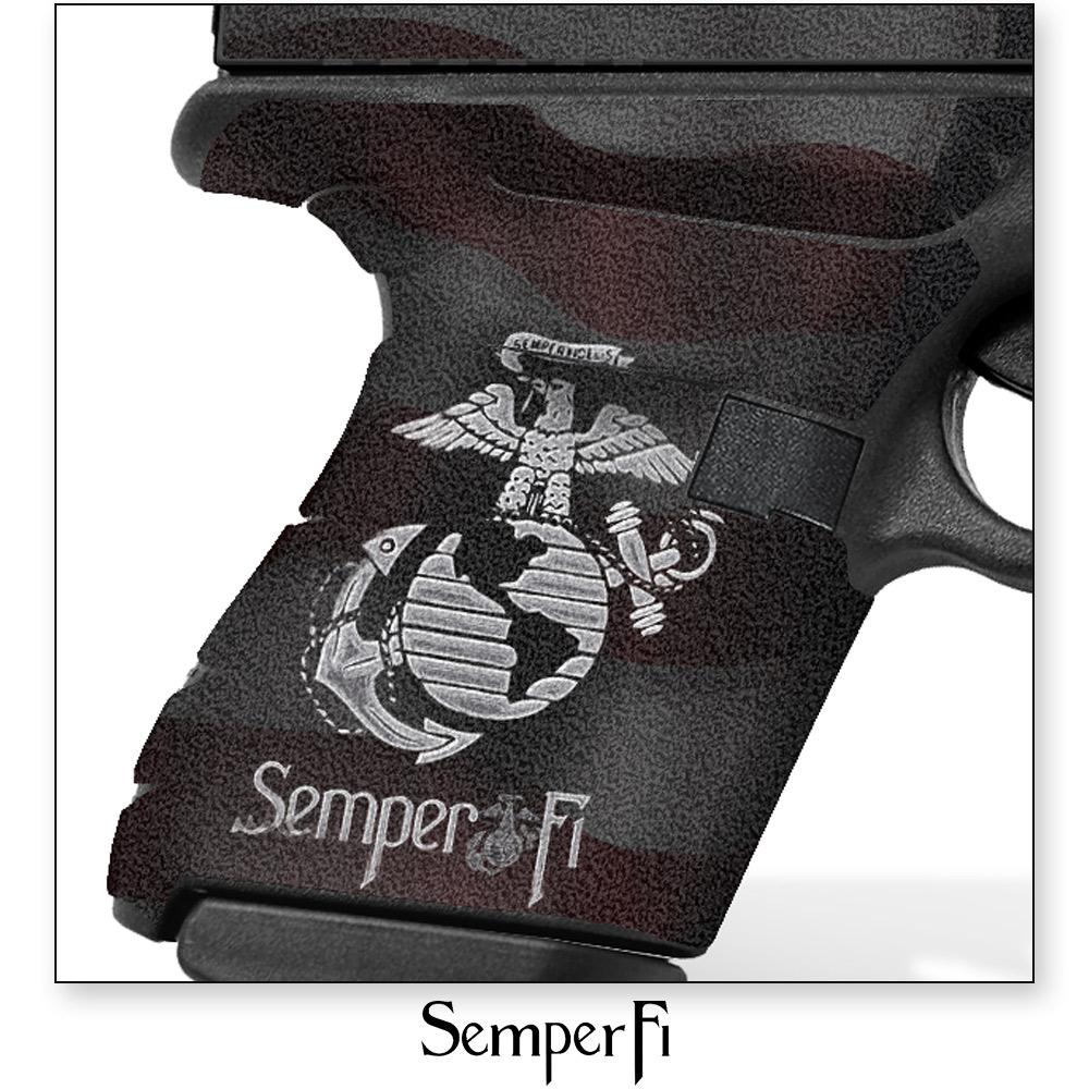 With over 30 designs to choose from, this stylish, tactical decal grip will not only give you a better and more comfortable hold, but it will also give your handgun a unique look. Cover just the frame or entire gun. Easy, do-it-yourself installation. Here are our most recent model template additions that you can select in the drop-down list below: