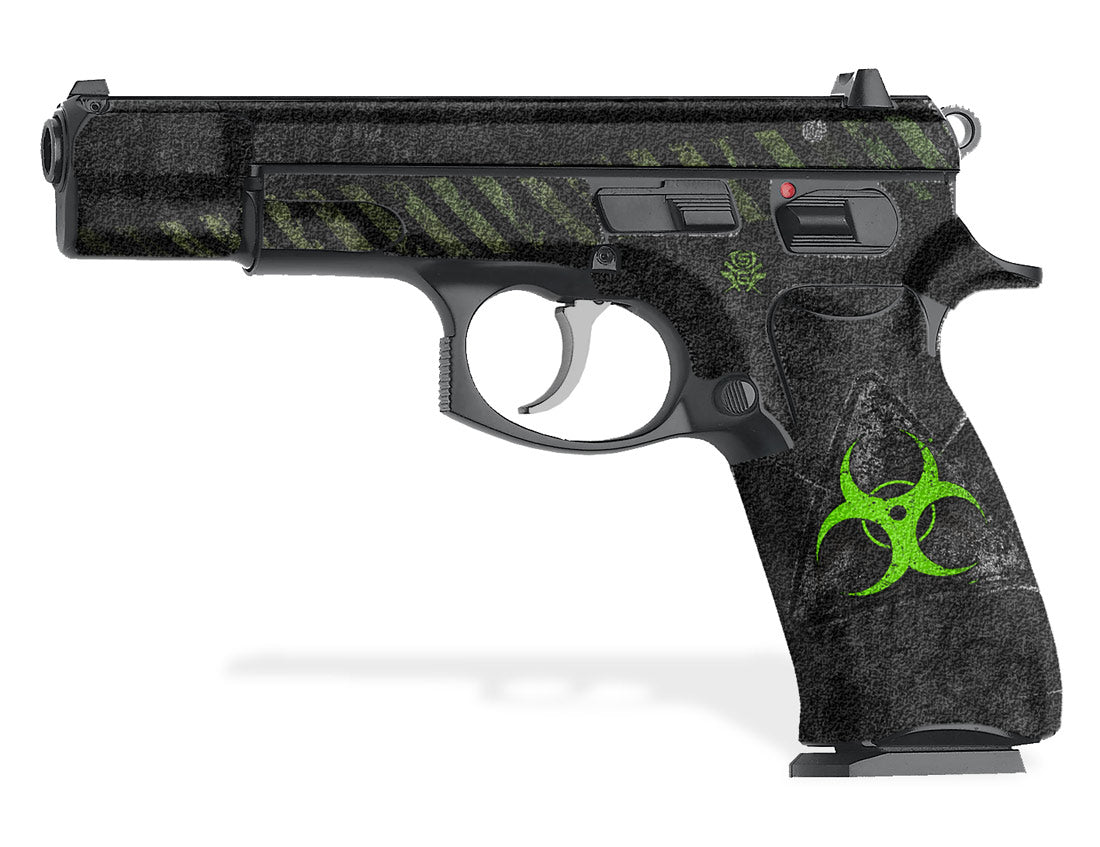 Decal Grip for CZ 75-B – Tactical decal grip that gives you a firmer and more comfortable hold of the heavier CZ 75. Cover just the frame or the slide as well. Easy, do-it-yourself installation. Biohazard design.