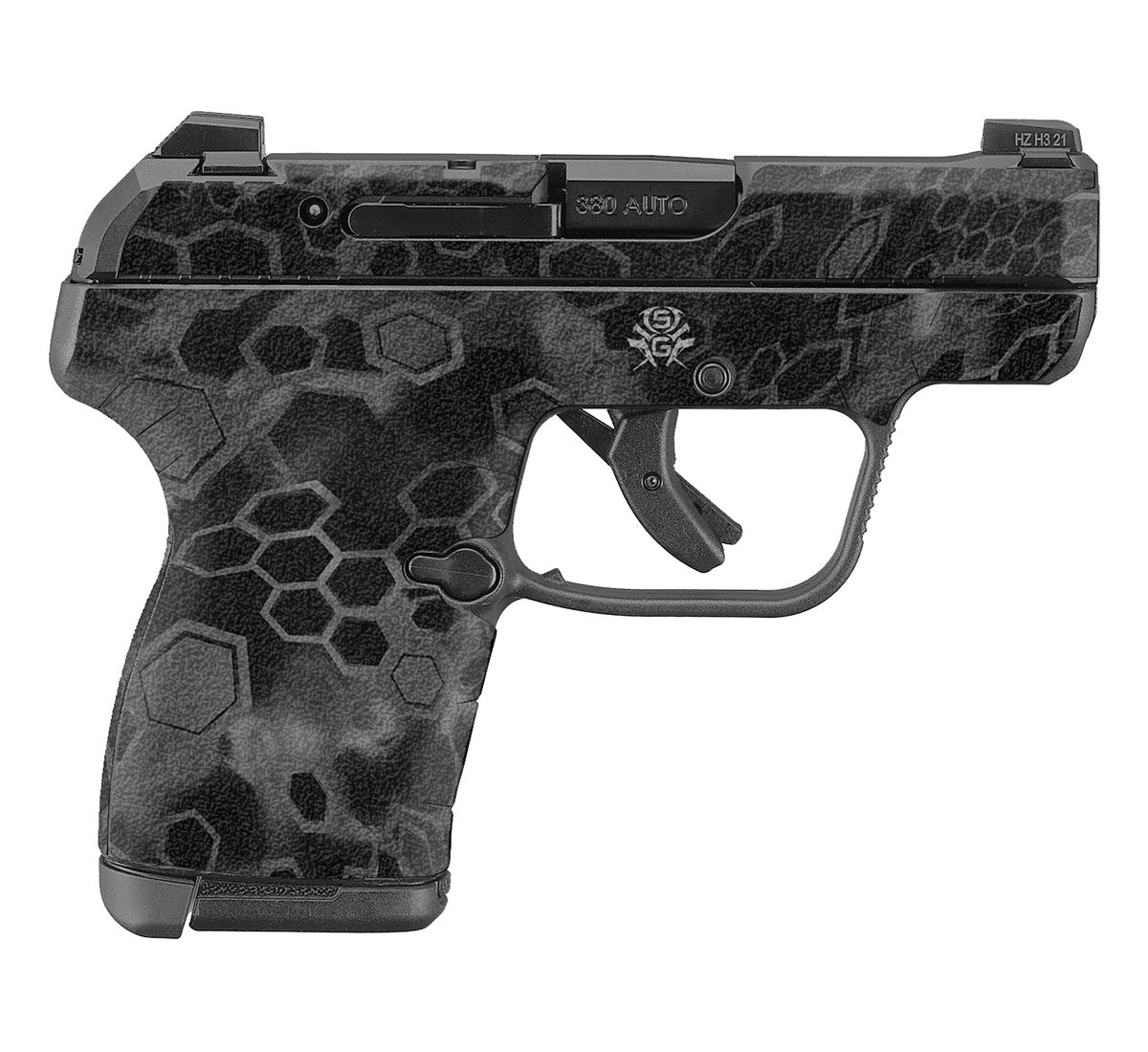 Ruger LCP Max Decal Grip – Showgun decal grips are manufactured with a rubberized, textured vinyl. The rubber-like feel is not only non-slip, but it won’t chaff or irritate your skin. Made with 3M adhesive that is specially formulated to mold into textured surfaces and stay on through harsh conditions. Cover just the frame of your LCP Max or apply it to the slide as well. Cryptic Camo design.