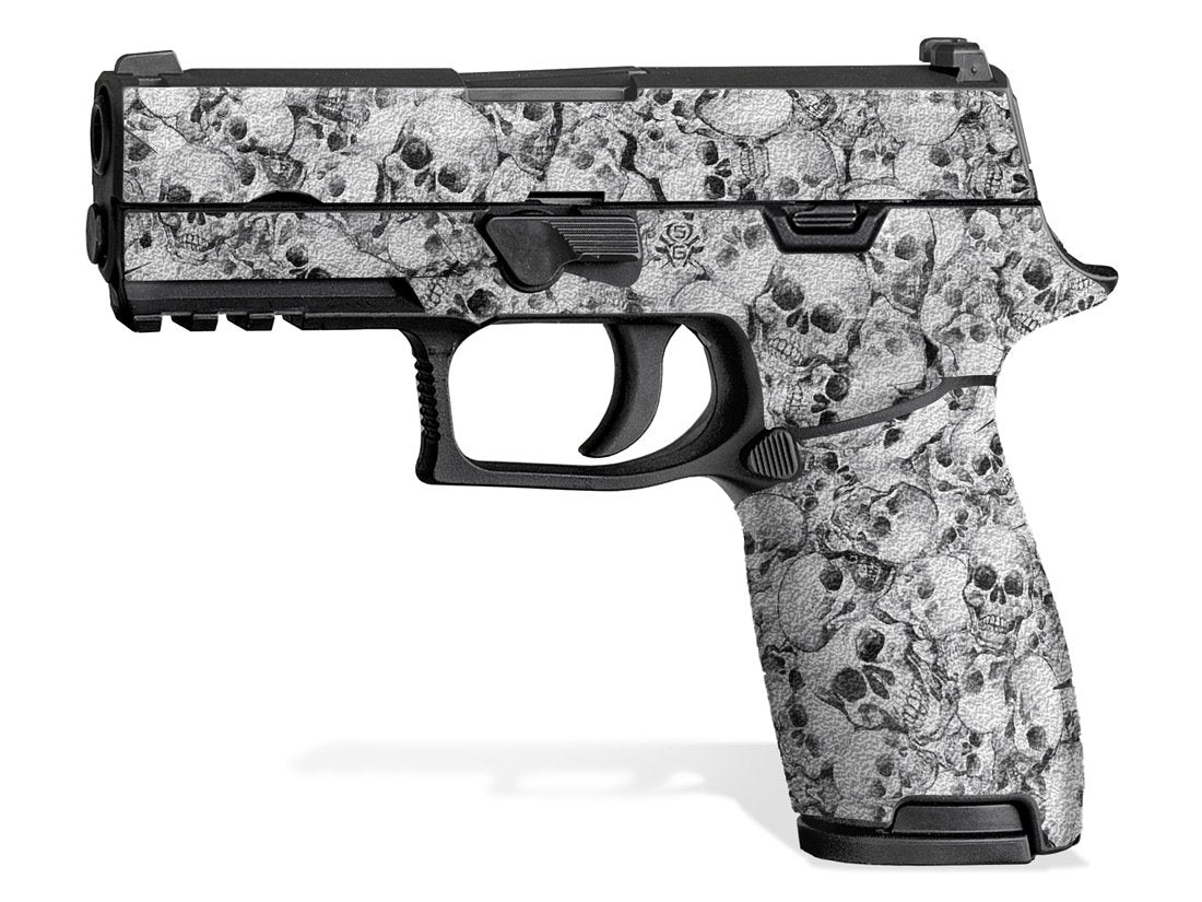Decal Grip Kit for Sig P320 Compact. Features an amazing rubber-like, textured grip surface for better grip and more control. Cover just the frame or apply it to the slide as well. Skull Collector design.