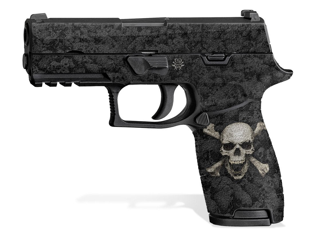 Decal Grip Kit for Sig P320 Compact. Features an amazing rubber-like, textured grip surface for better grip and more control. Cover just the frame or apply it to the slide as well. Skull & Crossbones design.