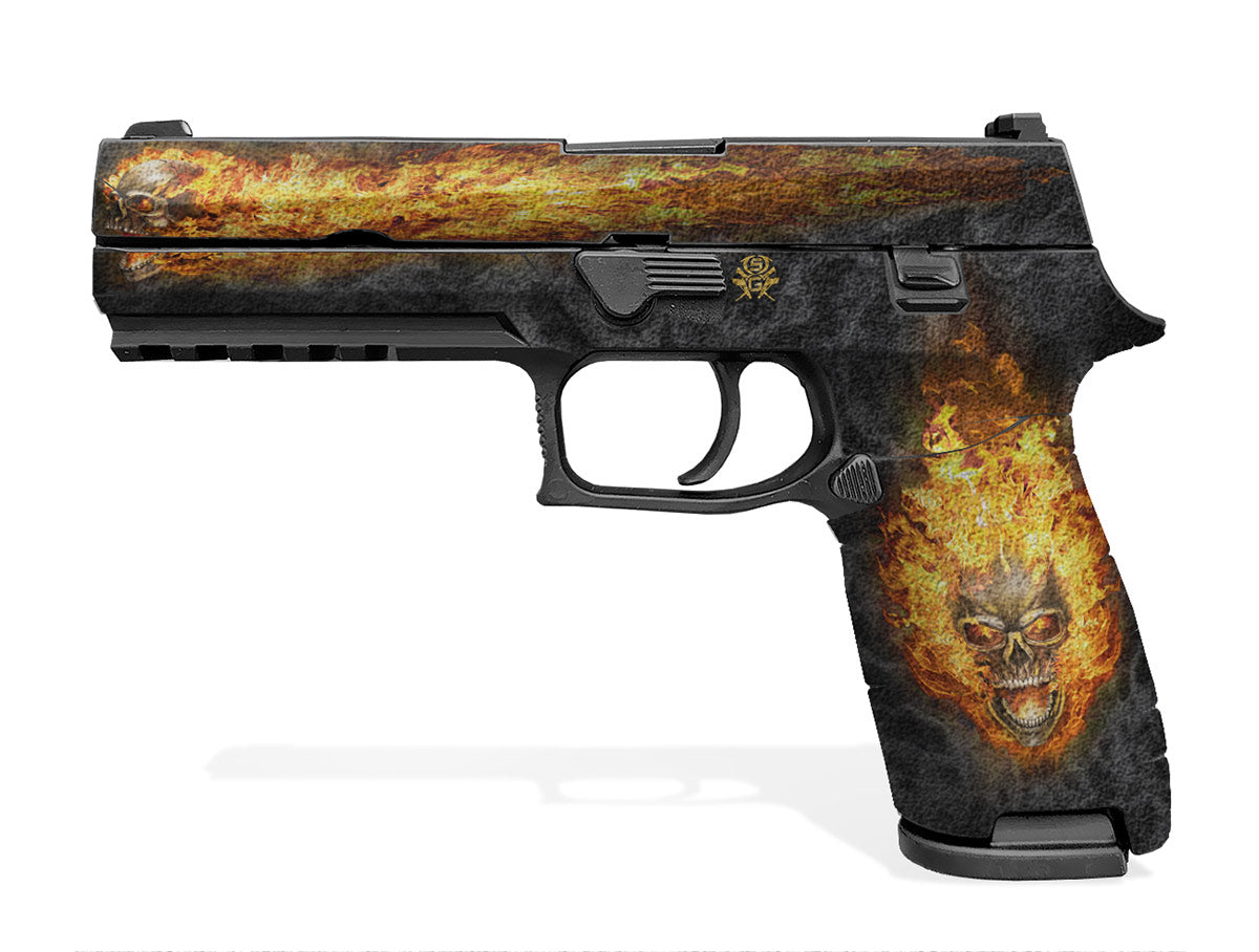 Decal Grip for Full-Size Sig P320 – Showgun decal grips are manufactured with a rubberized, textured vinyl and 3M adhesive specially formulated to mold into textured surfaces and stays on through harsh environments and conditions. Cover just the frame of your Full-Size P320 or apply it to the slide as well. The rubber-like feel is not only non-slip, but it won’t chaff or irritate your skin. Nitro design.