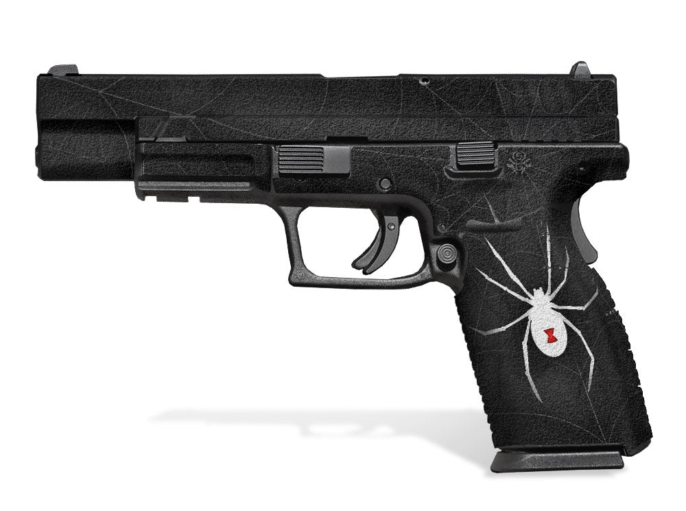 Springfield 5″ XD Decal Grip. Fits .45 caliber models. Also known as “XD Tactical” model. Our decal grips feature an amazing rubber-like, textured grip surface for a better, and more comfortable hold of the 5″ XD. Cover just the frame or entire gun. Easy, do-it-yourself installation. Black Widow design.