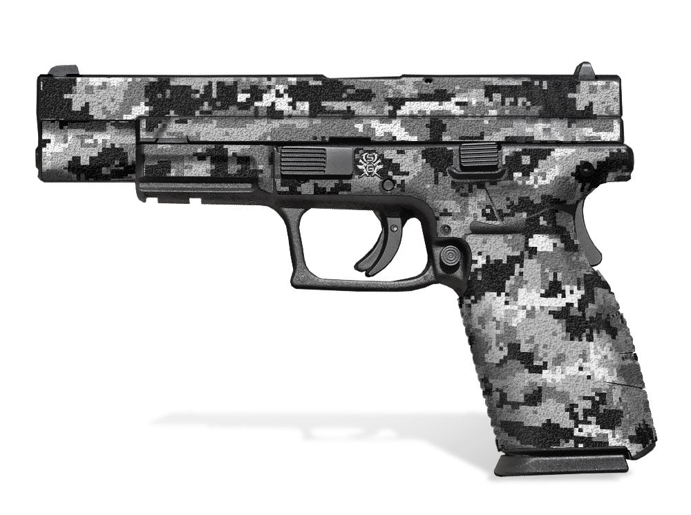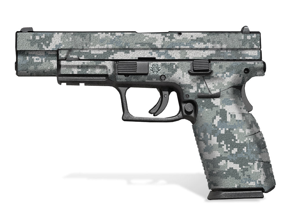 Springfield 5″ XD Decal Grip. Fits .45 caliber models. Also known as “XD Tactical” model. Our decal grips feature an amazing rubber-like, textured grip surface for a better, and more comfortable hold of the 5″ XD. Cover just the frame or entire gun. Easy, do-it-yourself installation. Digital Camo design.