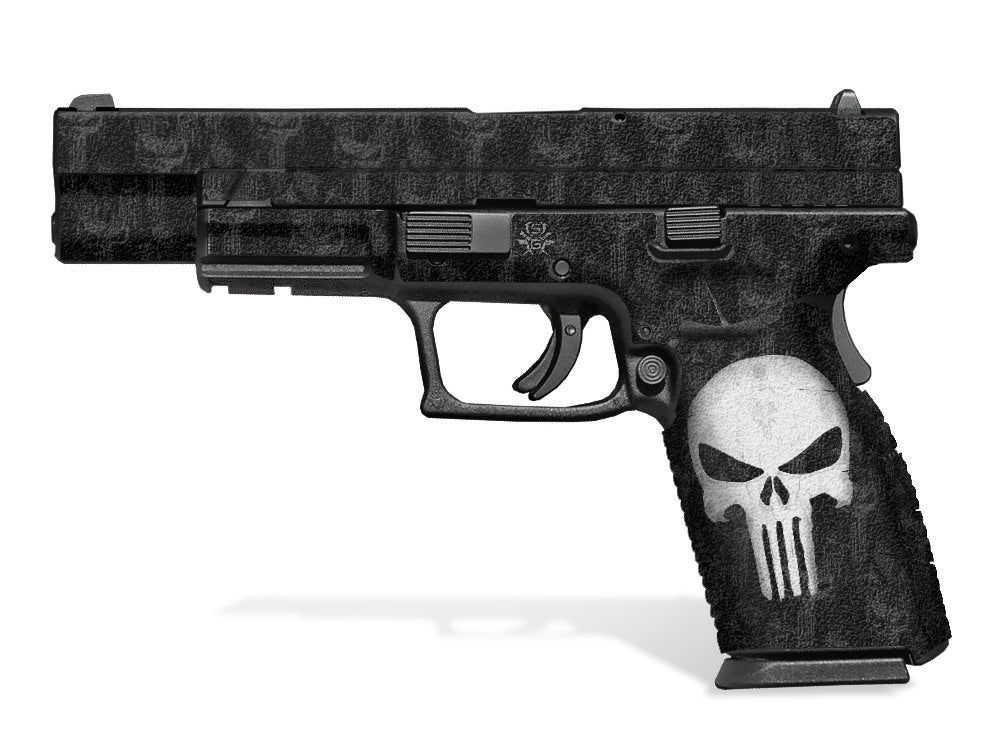 Springfield 5″ XD Decal Grip. Fits .45 caliber models. Also known as “XD Tactical” model.  Our decal grips feature an amazing rubber-like, textured grip surface for a better, and more comfortable hold of the 5″ XD. Cover just the frame or entire gun. Easy, do-it-yourself installation. Punisher design.