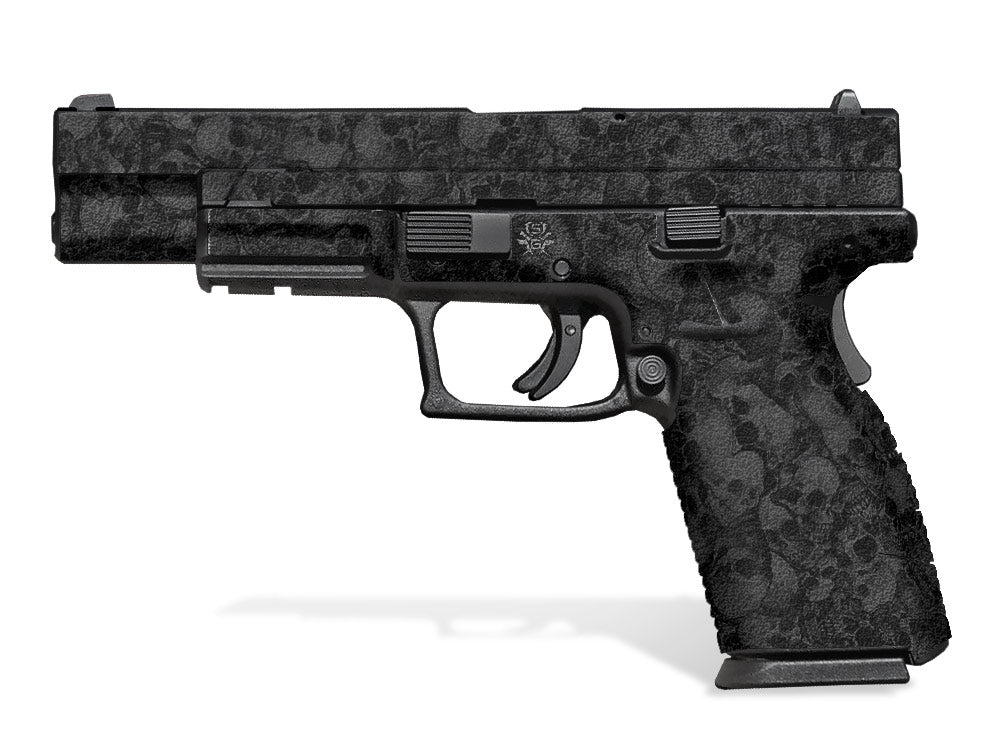 Springfield 5″ XD Decal Grip. Fits .45 caliber models. Also known as “XD Tactical” model.  Our decal grips feature an amazing rubber-like, textured grip surface for a better, and more comfortable hold of the 5″ XD. Cover just the frame or entire gun. Easy, do-it-yourself installation.  Skull Collector design.