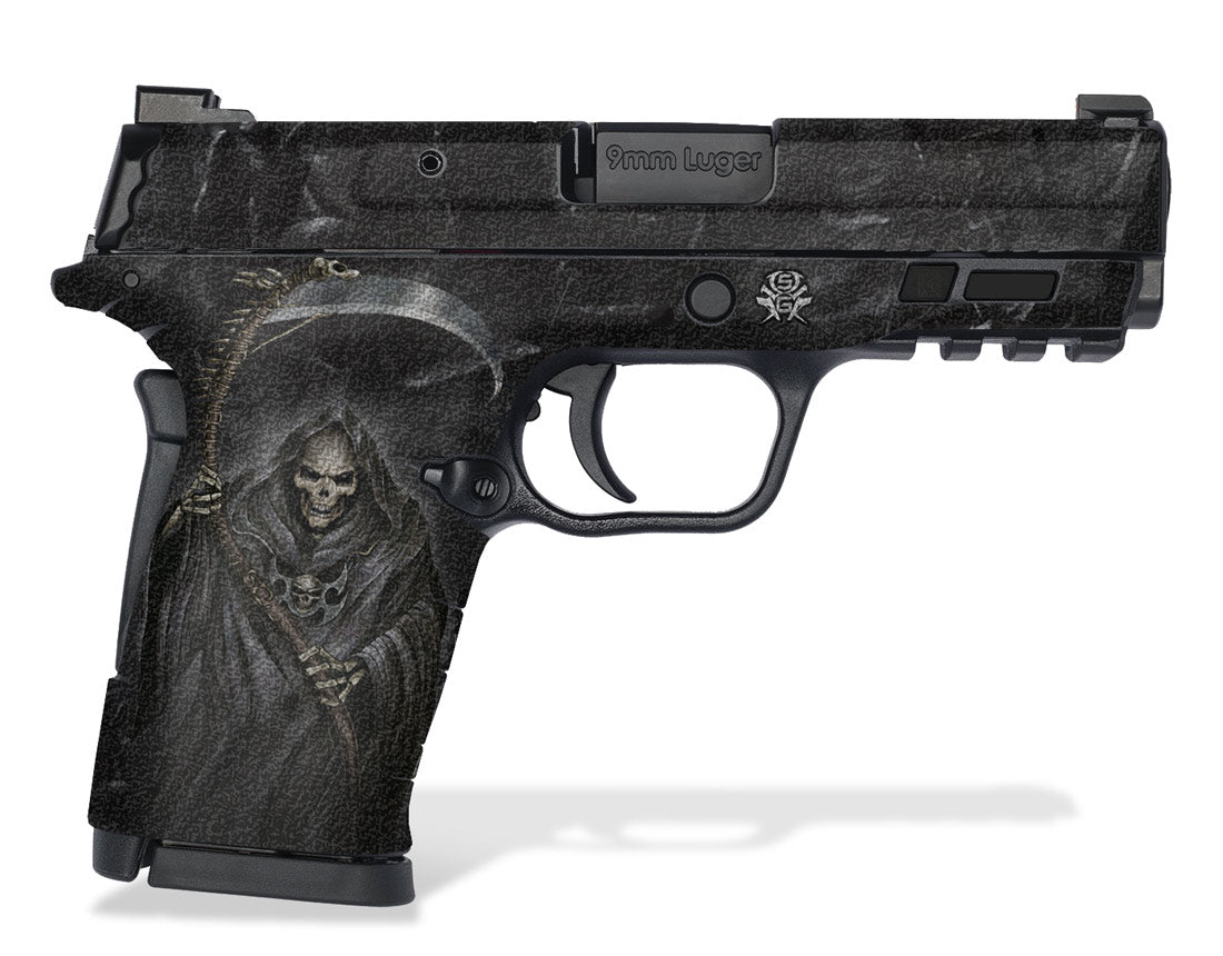 Smith & Wesson M&P Shield EZ M2.0 9mm Micro-Compact Decal Grip – Stylish, tactical decal grip that will give you a better, and more comfortable hold of the M&P Shield EZ. Cover just the frame or the entire gun. Easy, do-it-yourself installation.  Grim Reaper design.