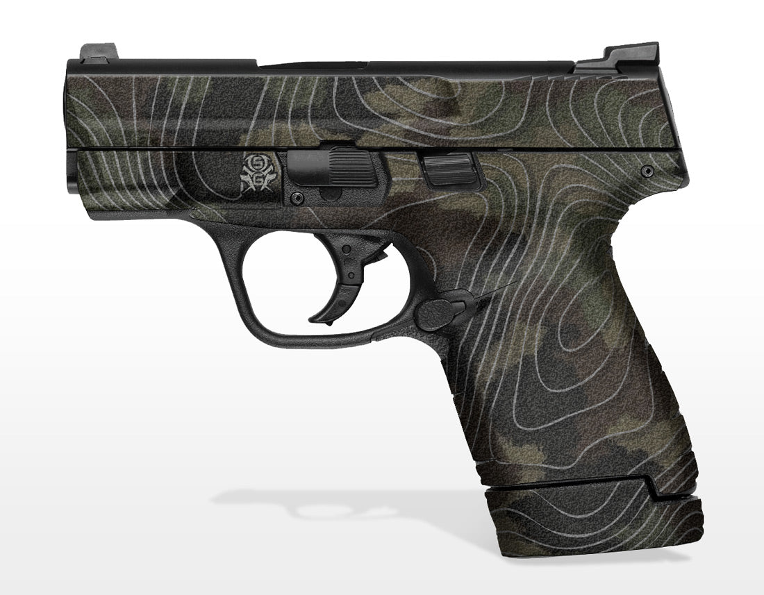 Decal Grip Kit for S&W M&P Shield, 9mm and .40. Features an amazing rubber-like, textured grip surface for better grip and more control. Cover just the frame or apply it to the slide as well. Topo Camo design.