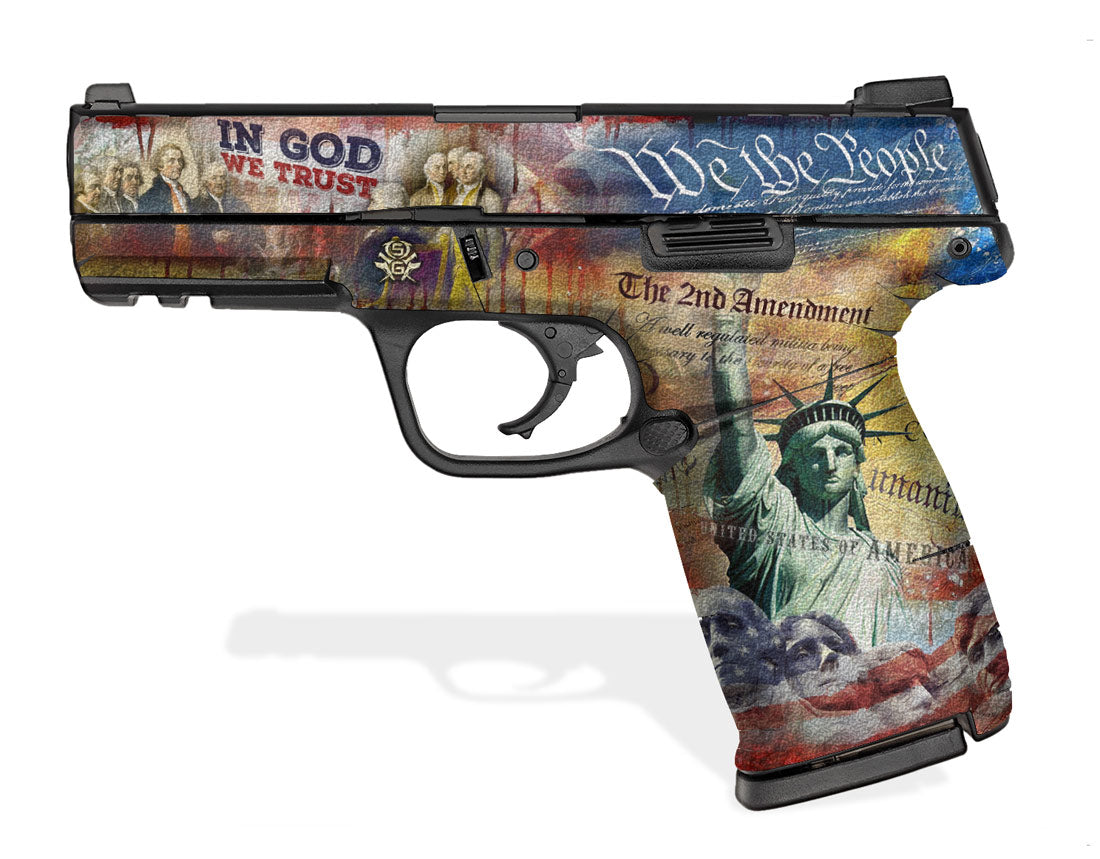 Decal Grip for Smith & Wesson SD9, SD9VE, SD40 & SD40VE. Features an amazing rubber-like, textured grip surface for better grip and more control. Cover just the frame or apply it to the slide as well. We The People design.