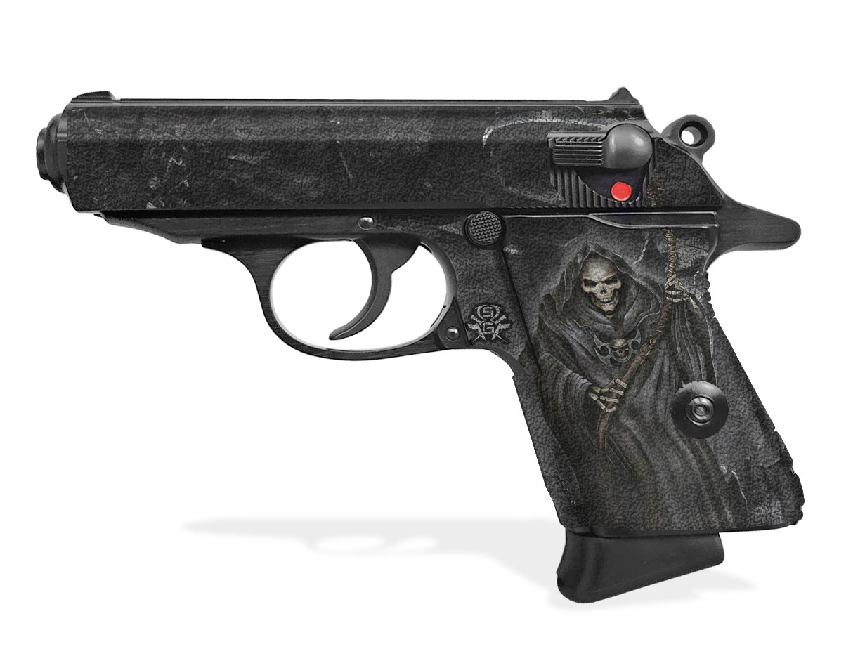 Walther PPK Decal Grip – Tactical decal grip with a rubberized, textured grip surface that gives you a better, more comfortable hold. Cover just the frame or the entire gun. Easy, do-it-yourself installation. Grim Reaper design.