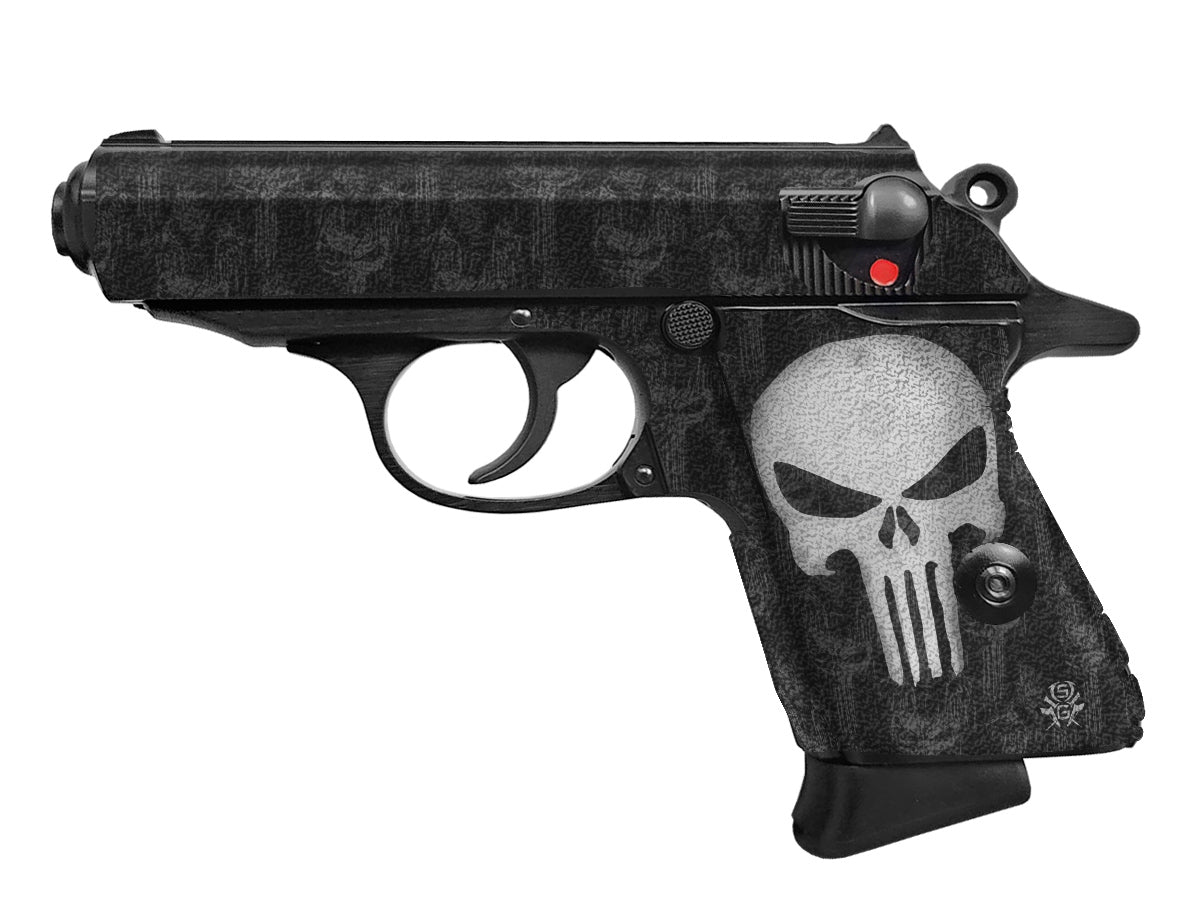 Walther PPK Decal Grip – Tactical decal grip with a rubberized, textured grip surface that gives you a better, more comfortable hold. Cover just the frame or the entire gun. Easy, do-it-yourself installation. Punisher design.