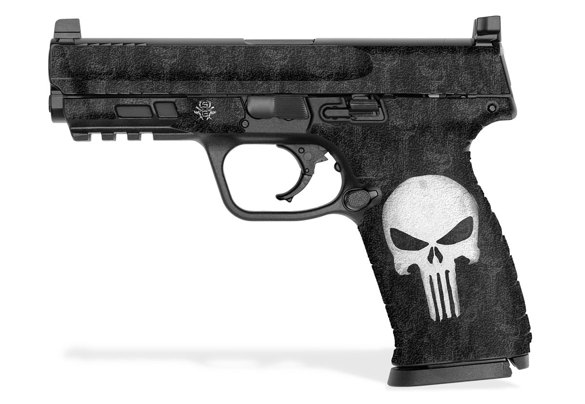 Smith & Wesson M&P M2.0 Full-Size (4.25″) 9mm/.40 Decal Grip – Features a tactical, textured grip surface with an amazing rubber-like feel, for a more secure and comfortable hold. Cover just the frame or the entire gun. Easy, do-it-yourself installation. Punisher design