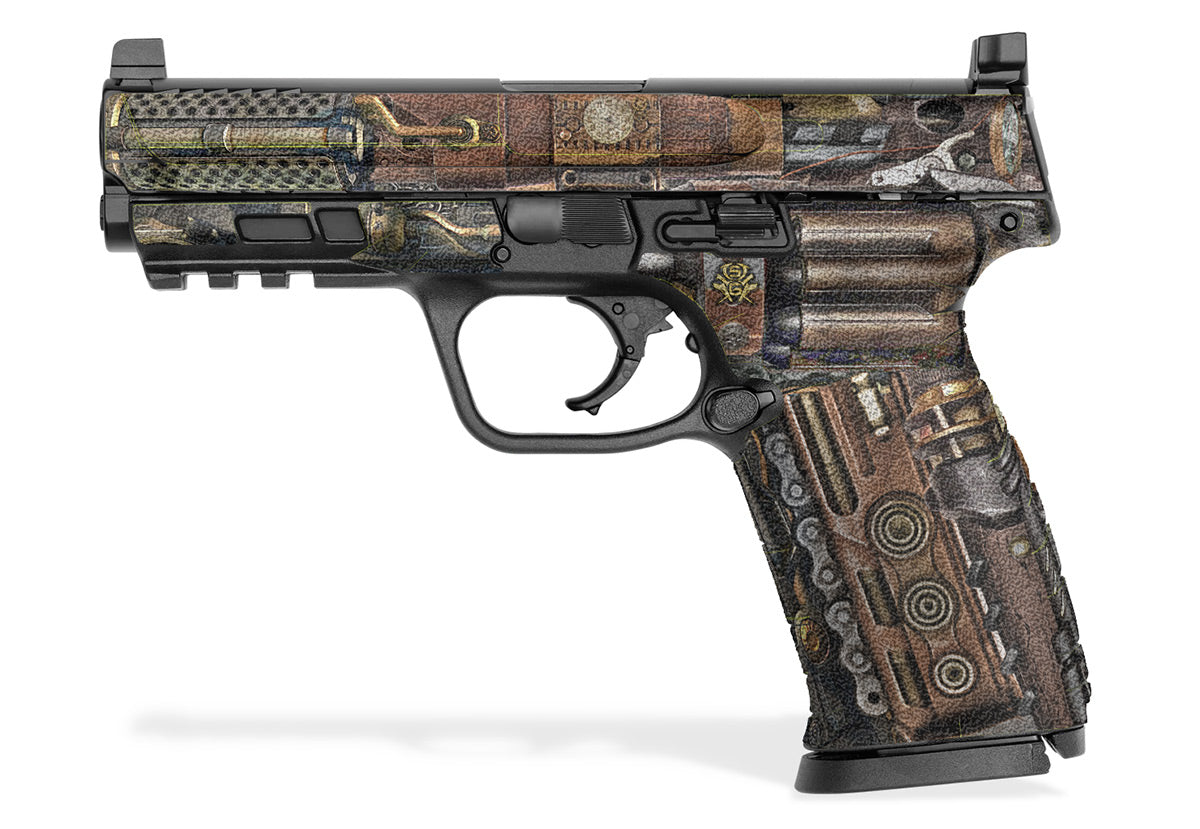 Smith & Wesson M&P M2.0 Full-Size (4.25″) 9mm/.40 Decal Grip – Features a tactical, textured grip surface with an amazing rubber-like feel, for a more secure and comfortable hold. Cover just the frame or the entire gun. Easy, do-it-yourself installation. Steampunk design