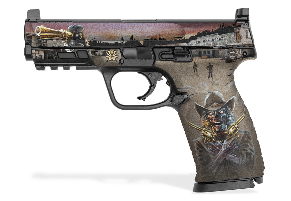 Smith & Wesson M&P M2.0 Full-Size (4.25″) 9mm/.40 Decal Grip – Features a tactical, textured grip surface with an amazing rubber-like feel, for a more secure and comfortable hold. Cover just the frame or the entire gun. Easy, do-it-yourself installation. Zombie Outlaw design
