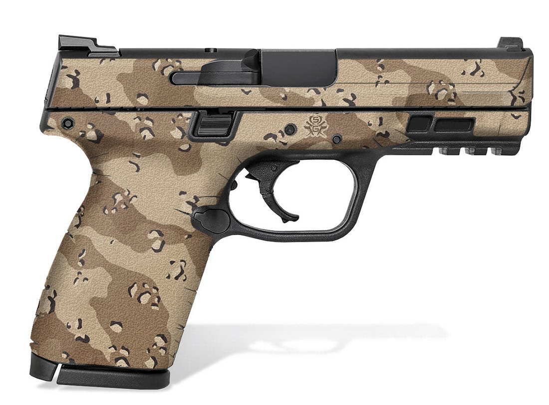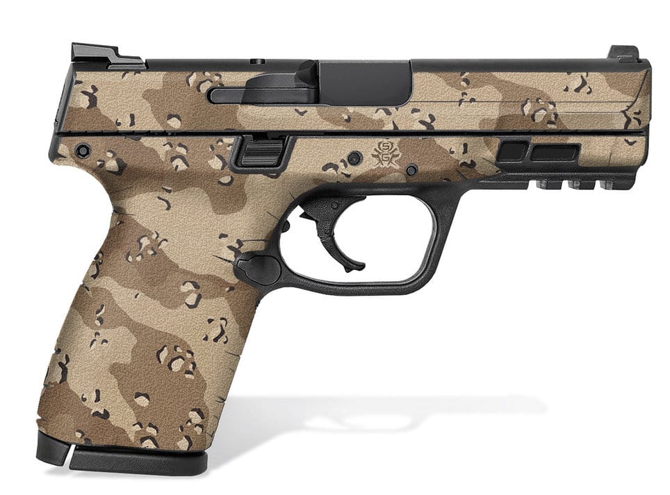 Smith & Wesson M&P M2.0 Compact 4″ 9mm/.40 Decal Grip – Features a tactical, textured grip surface with an amazing rubber-like feel, for a more secure and comfortable hold. Cover just the frame or the entire gun. Easy, do-it-yourself installation. Desert Camo design