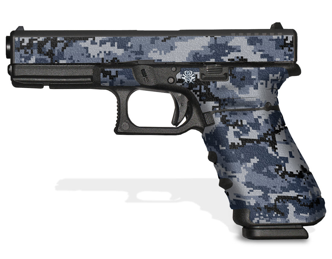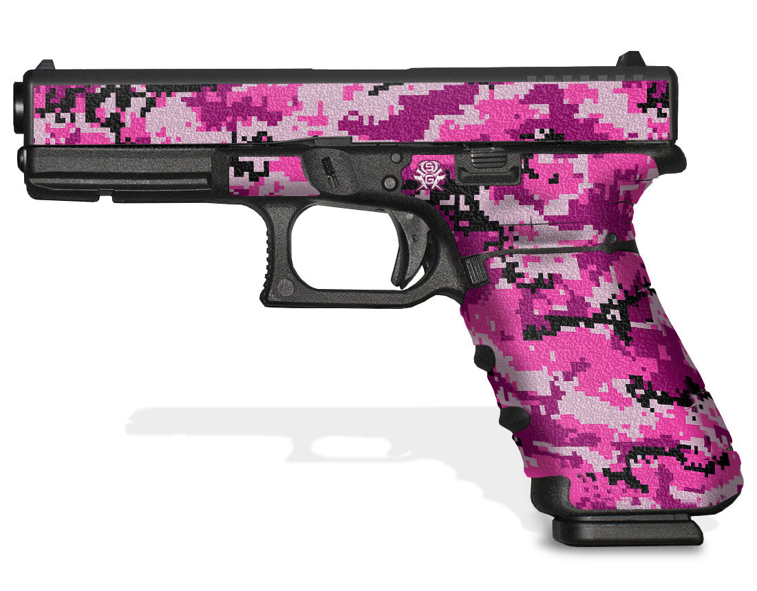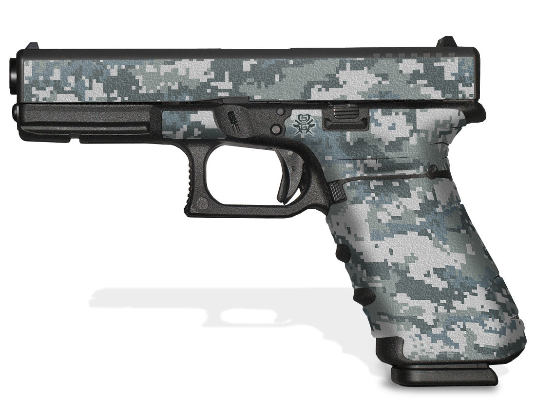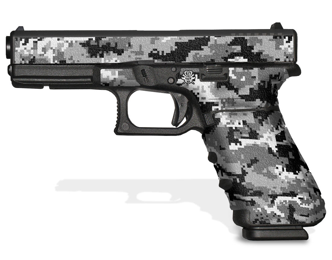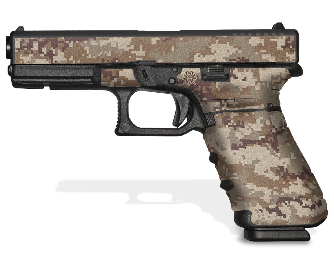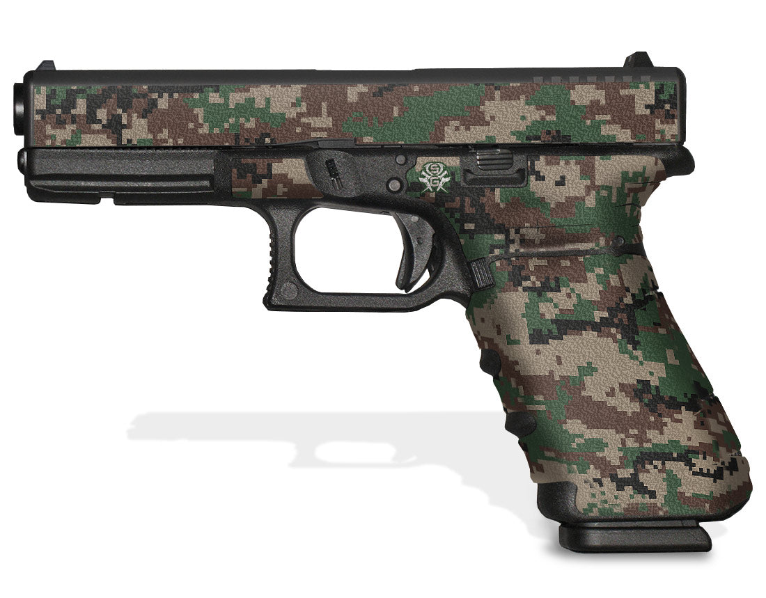 Digital Camo Decal Grip for Glock 17 Gen 3, Gen 4 & Gen 5 . Features a textured, rubber-like surface to give you a better grip and more control of the firearm. Cover just your G17 frame or add grip and design to your slide as well.