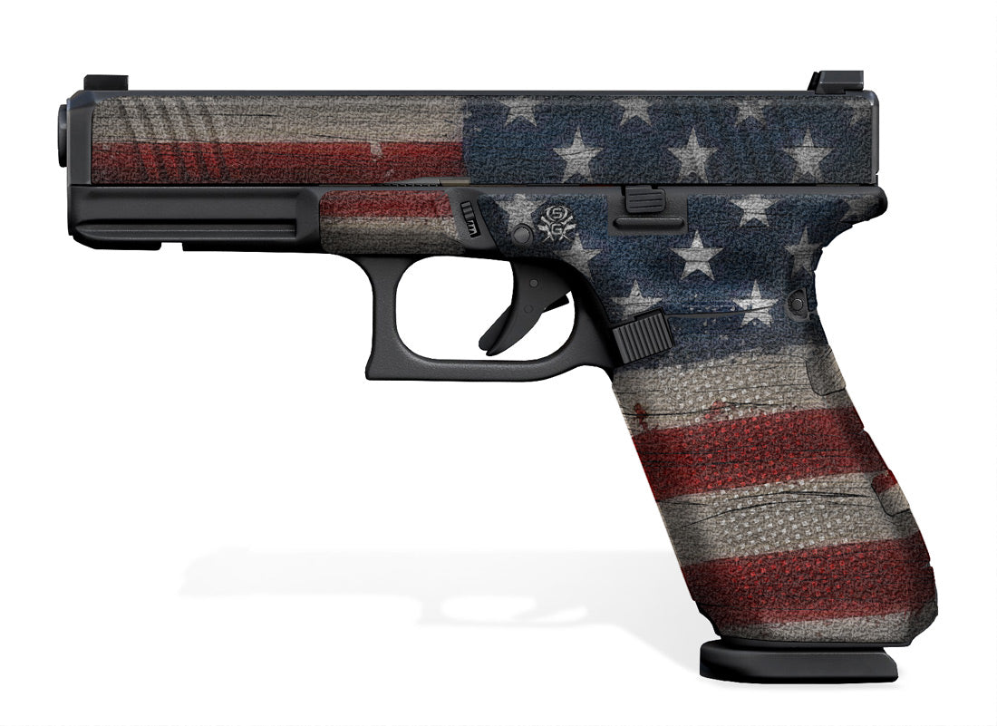 Old Glory Decal Grip for Gen 5 Glock 17. Features a textured, rubber-like surface to give you a better grip and more control of the firearm. Cover just your G17 frame or add grip and design to your slide as well.