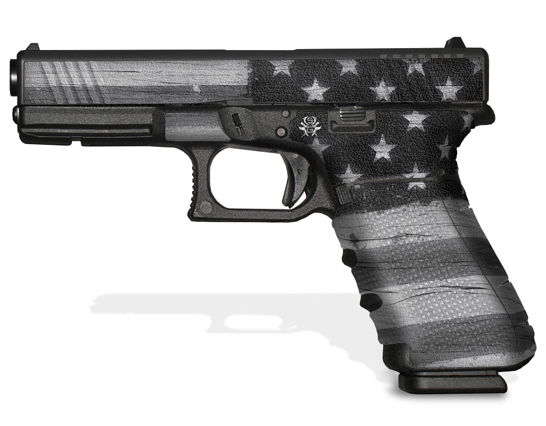 Subdued Flag Decal Grip for Gen 1-3 Glock 17. Features a textured, rubber-like surface to give you a better grip and more control of the firearm. Cover just your G17 frame or add grip and design to your slide as well.