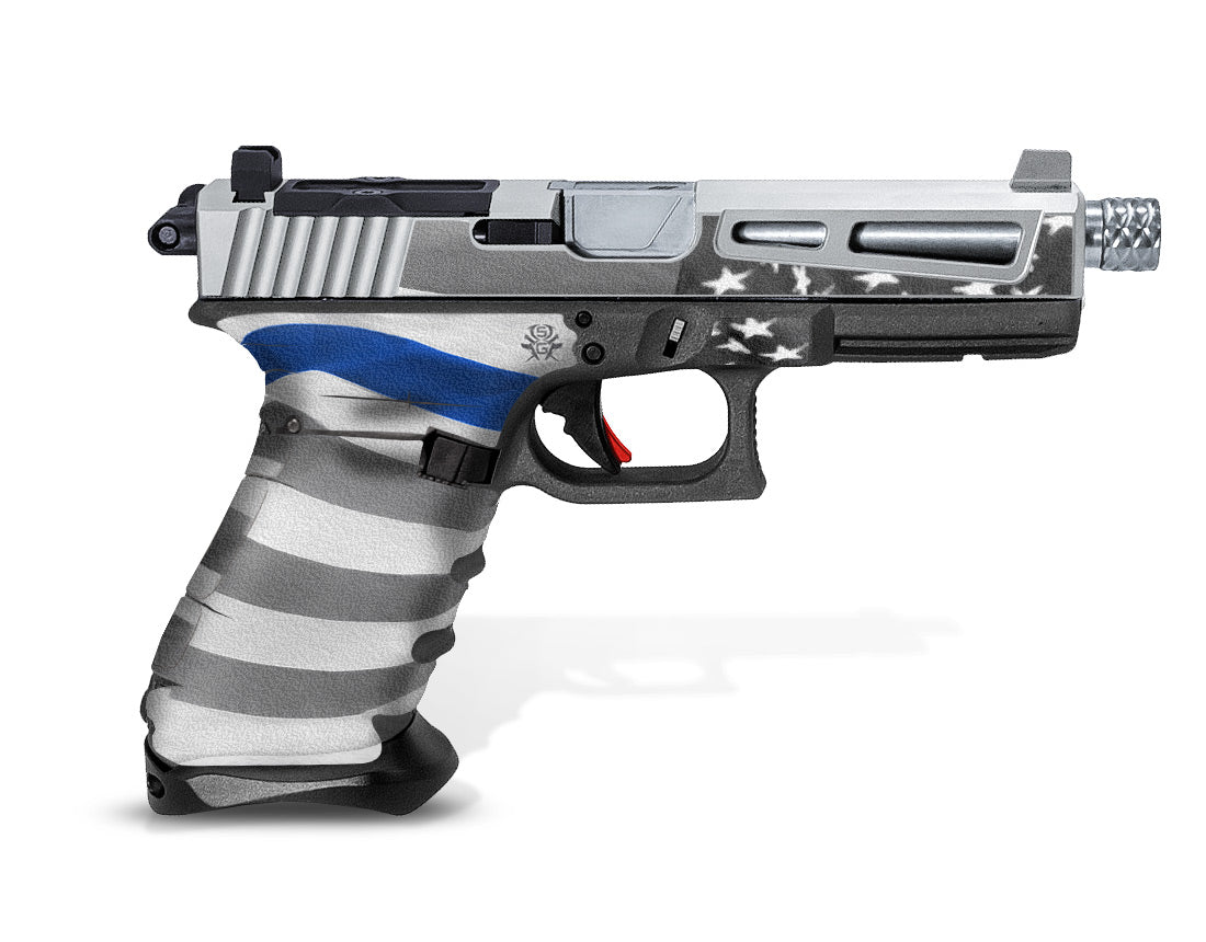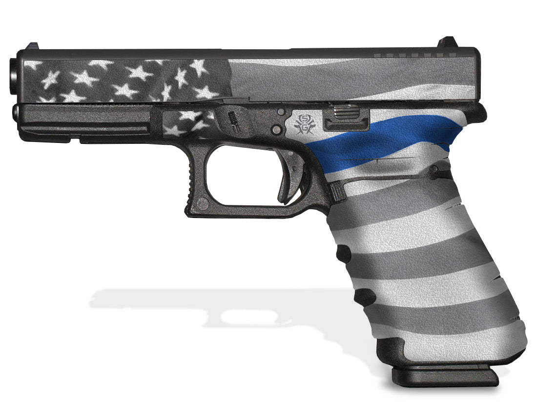 Grip Tape for Glock Gen 3 G17 – Thin Blue Line – Support our Law Enforcement Officers while adding a tactical benefit… these decal grips feature a textured, rubber-like surface to give you a better grip and more control of your firearm. Cover just the frame of your Glock 17, or add grip and design to the slide as well.
