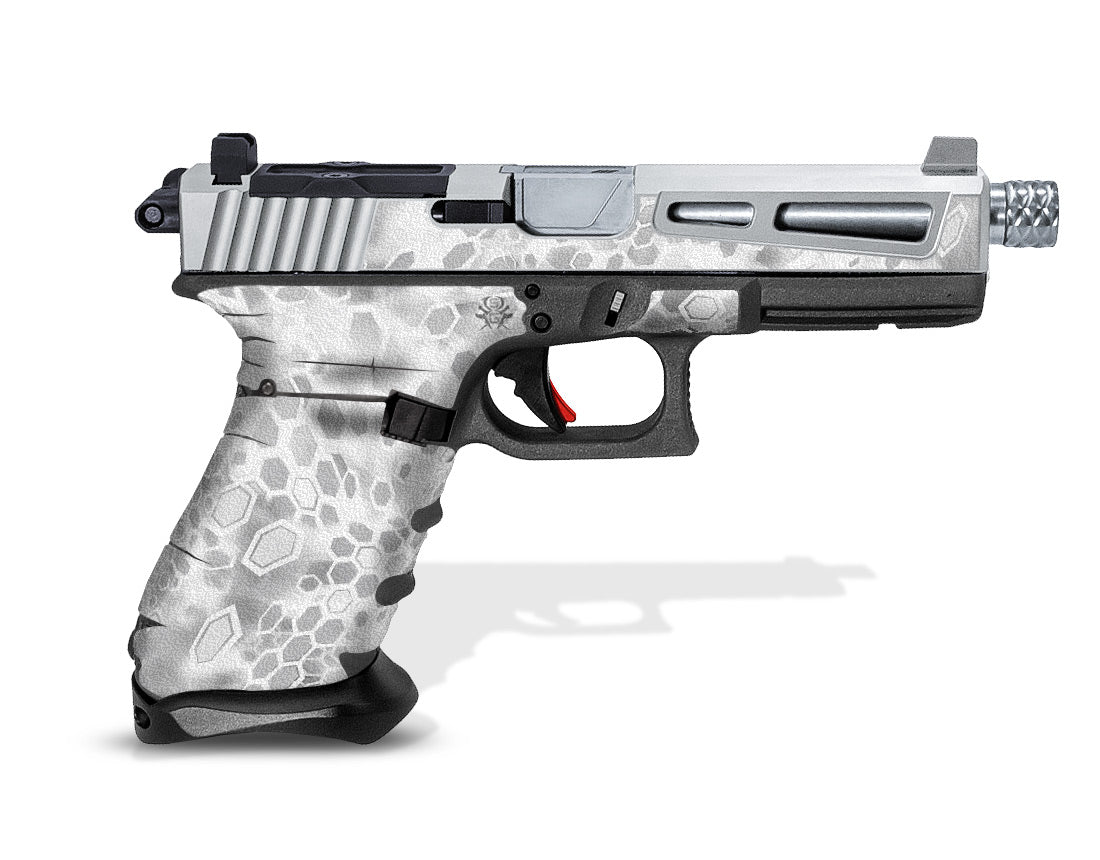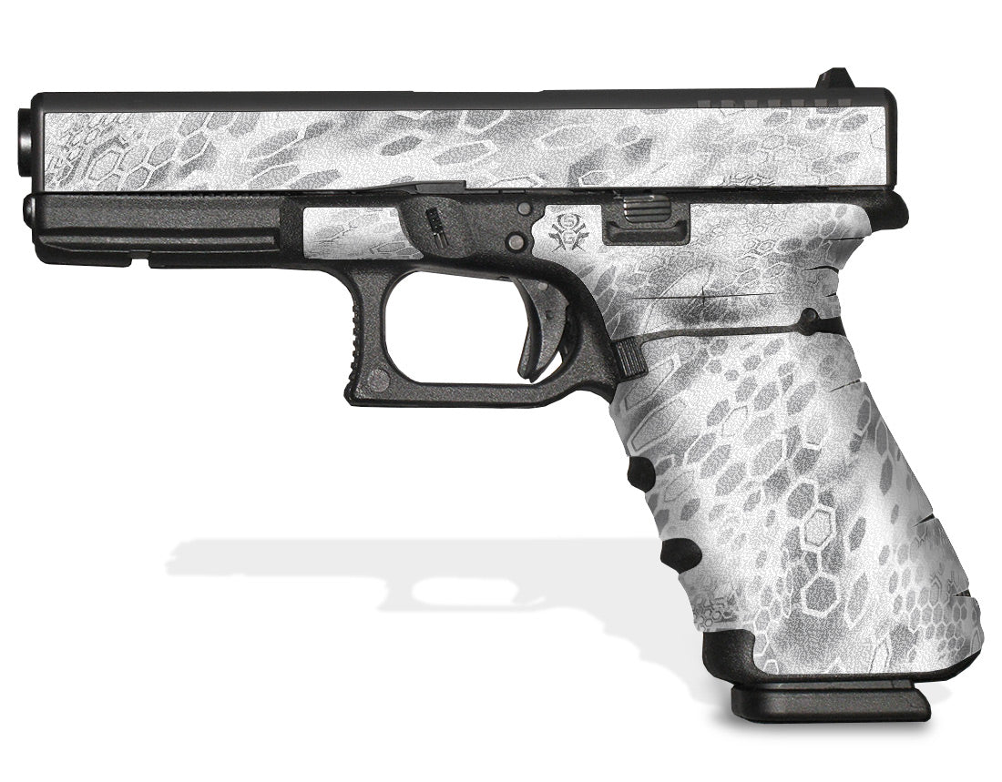 Decal Grip Kit for Glock Gen-4 G17 – Cryptic Camo design by Invision Artworks. Features a textured, rubber-like grip surface to give you a better grip and more control of your firearm. Cover just the frame or add grip and design to the slide of your Glock 17 as well.