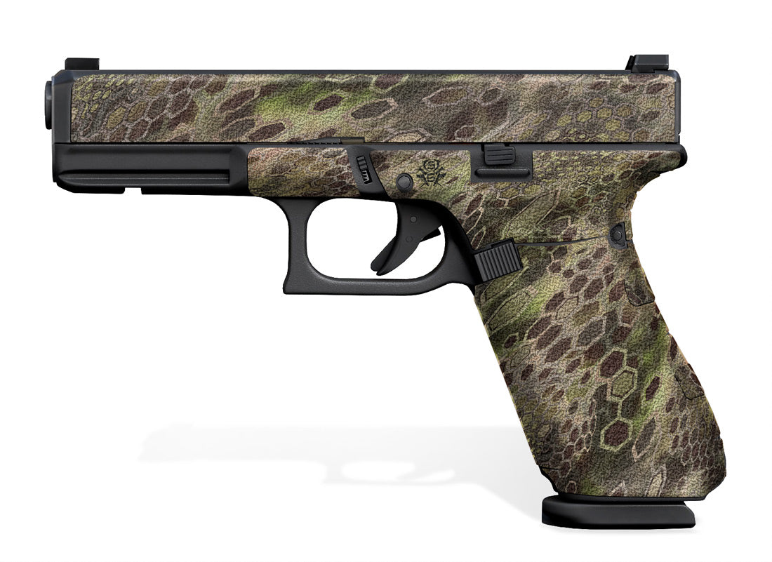Decal Grip-Tape Kit for Glock 17 Gen 5 – Featuring Cryptic Camo design, a textured, rubber-like grip surface to give you a better grip and more control of your Glock. Cover just the frame of your G17 or apply it to your slide as well.
