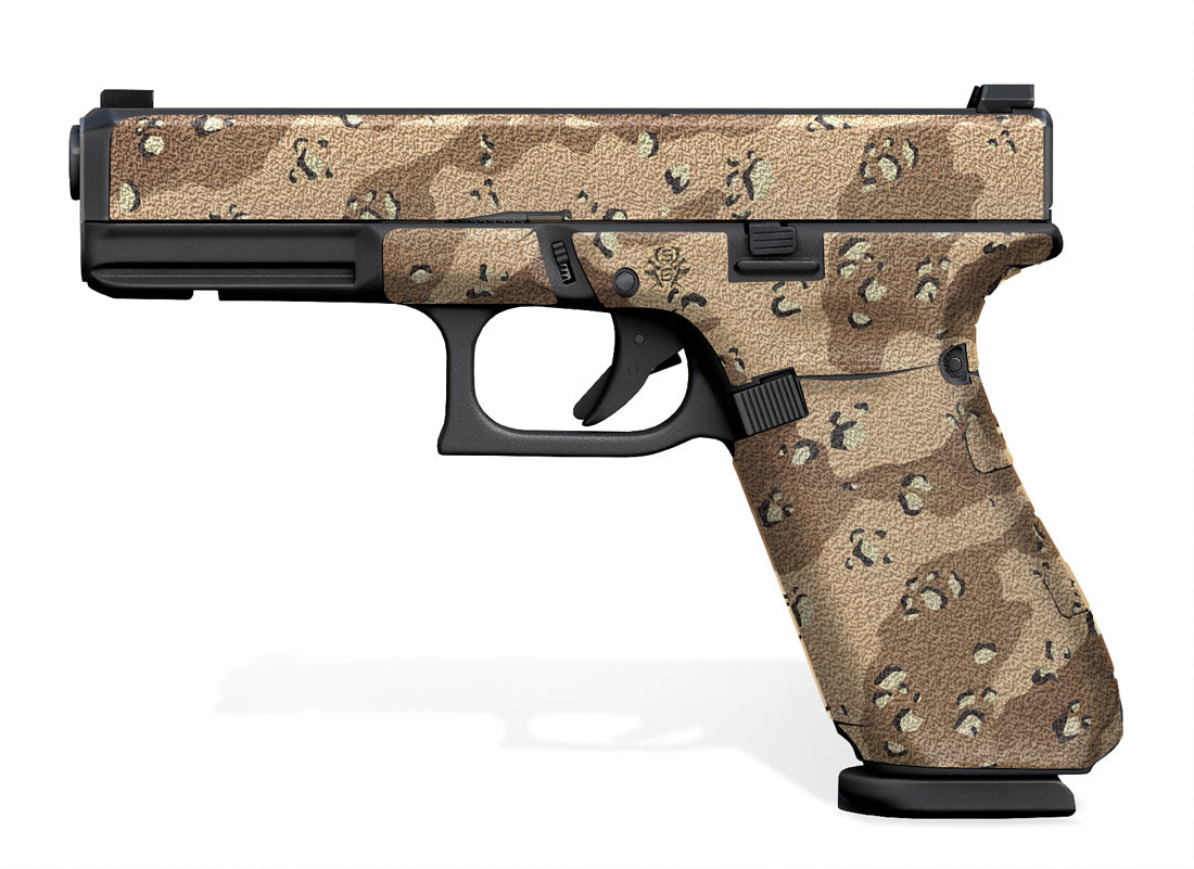 Decal Grip-Tape Kit for Gen 5 Glock 17 – Featuring Desert Camo design, a textured, rubber-like grip surface to give you a better grip and more control of your Glock. Cover just the frame of your G17 or apply it to your slide as well.