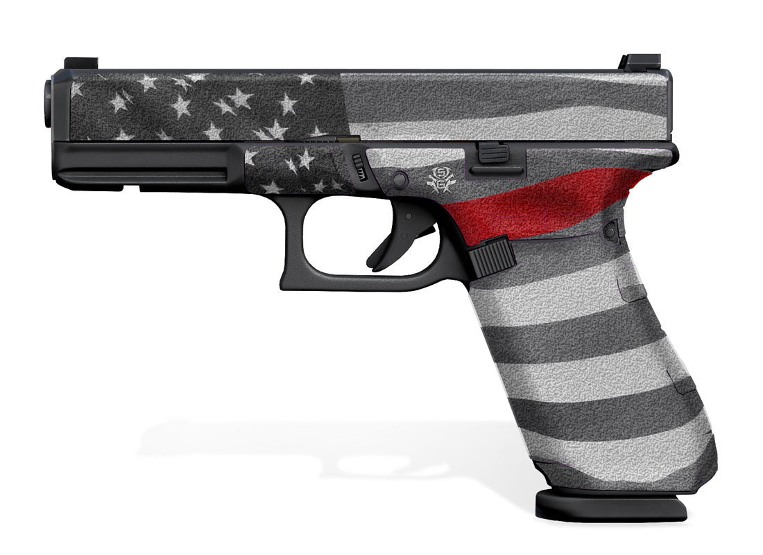 Thin Red Line Decal Grip for Gen 5 Glock 17. Show Your Support for Our Firefighters while adding a tactical benefit… Features a rubber-like, textured surface to give you a better grip and more control. Cover just your G17 frame or add grip and design to your slide as well.