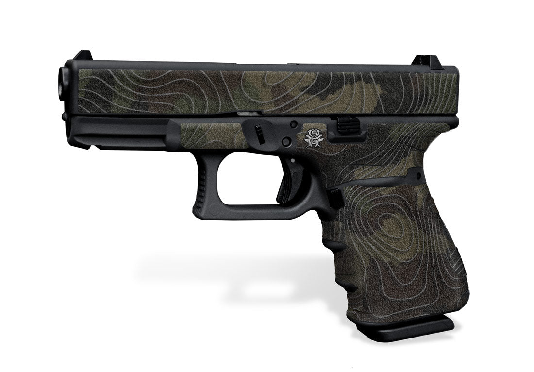 Topo Camo Decal Grip Kit for Glock G19 – Features a textured, rubber-like grip surface to give you a better grip and more control of your firearm. Easy, do-it-yourself installation. Cover just the frame or add grip and design to the slide of your Gen-3 Glock 19 also.