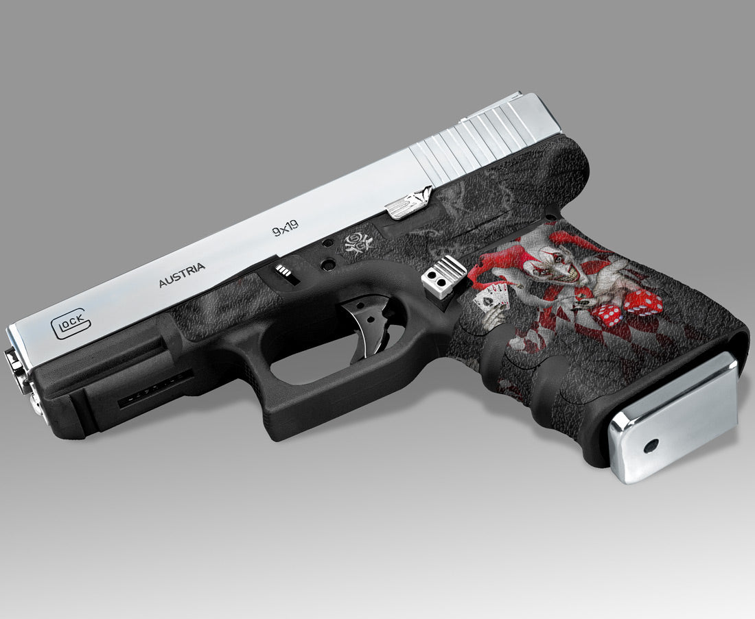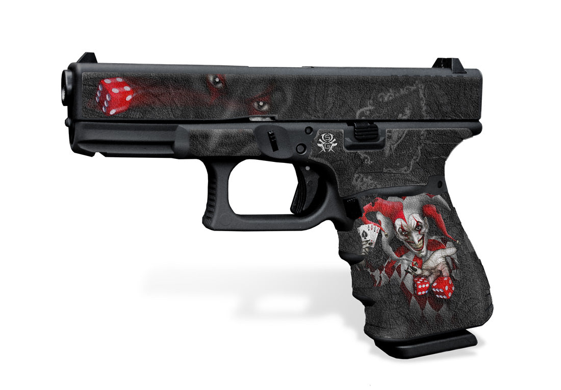 Decal Grip Kit for Gen 3 Glock 19 – Featuring The Joker design by Invision Artworks, a textured, rubber-like grip surface to give you a better grip and more control of your Glock. Cover just the frame of your G19 or add grip and style to your slide as well.