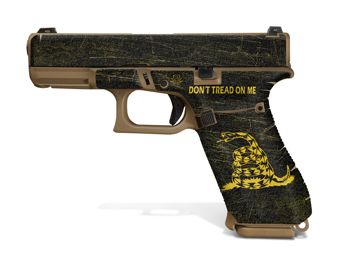 Decal Grip Kit for Glock 19X – Don’t Tread On Me design. With an amazing rubber-like feel, these tactical decal grips will not only give your Glock a cool look, but you’ll get a better and more comfortable hold of your G19X grip. Cover just the frame or slide as well. Easy, do-it-yourself installation.