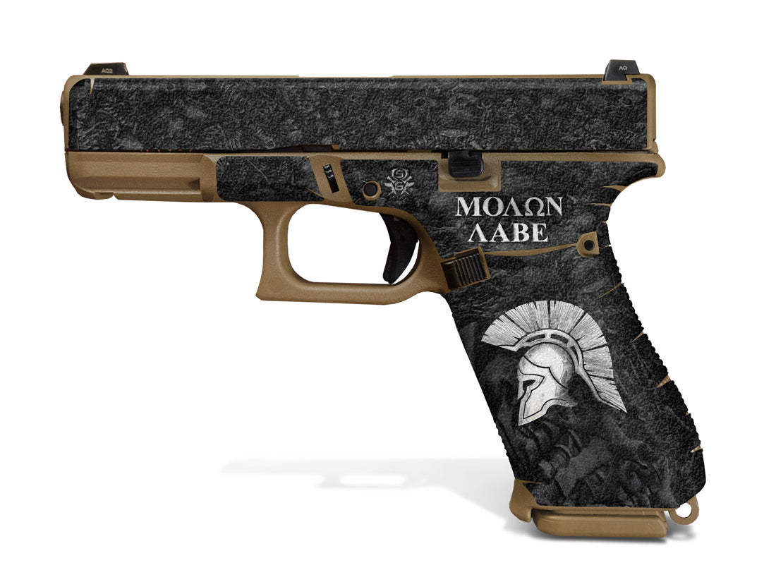 Decal Grip Kit for Glock 19X – Sparta/Molon Labe design. With an amazing rubber-like feel, these tactical decal grips will not only give your Glock a cool look, but you’ll get a better and more comfortable hold of your G19X grip. Cover just the frame or slide as well. Easy, do-it-yourself installation.