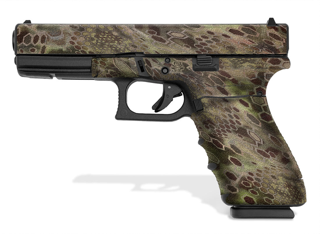Showgun Tactical Decal Grip for Glock 21 Gen 4 – Cryptic Camo design. Cover just the frame of the Gen 4 G21 or add grip to the slide as well. Features an amazing rubber-like, textured grip surface for a better hold and more control.