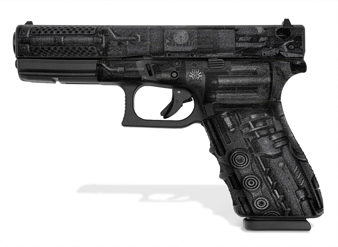 Showgun Tactical Decal Grip for Glock 21 – Steampunk design. Features an amazing rubber-like, textured grip surface for a better hold and more control. Cover just the frame of the G21 or add grip to the slide also.