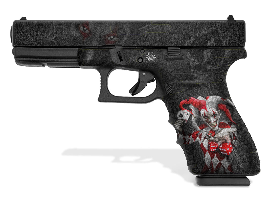 Showgun Tactical Decal Grip for Glock 21 – The Joker design by Invision Artworks. Features an amazing rubber-like, textured grip surface for a better hold and more control. Cover just the frame of the G21 or add grip to the slide as well.
