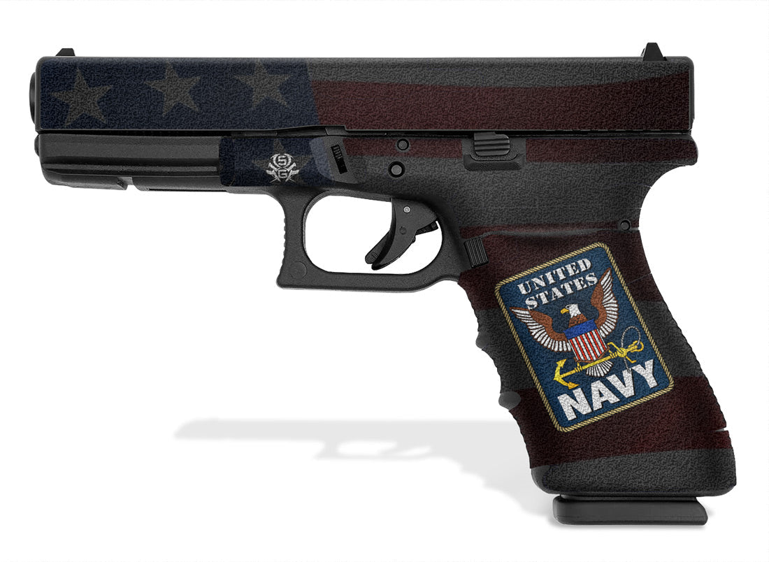 Showgun Tactical Decal Grip for Glock 21 – US NAVY design. Features an amazing rubber-like, textured grip surface for a better hold and more control. Cover just the frame of the G21 or add grip to the slide as well.