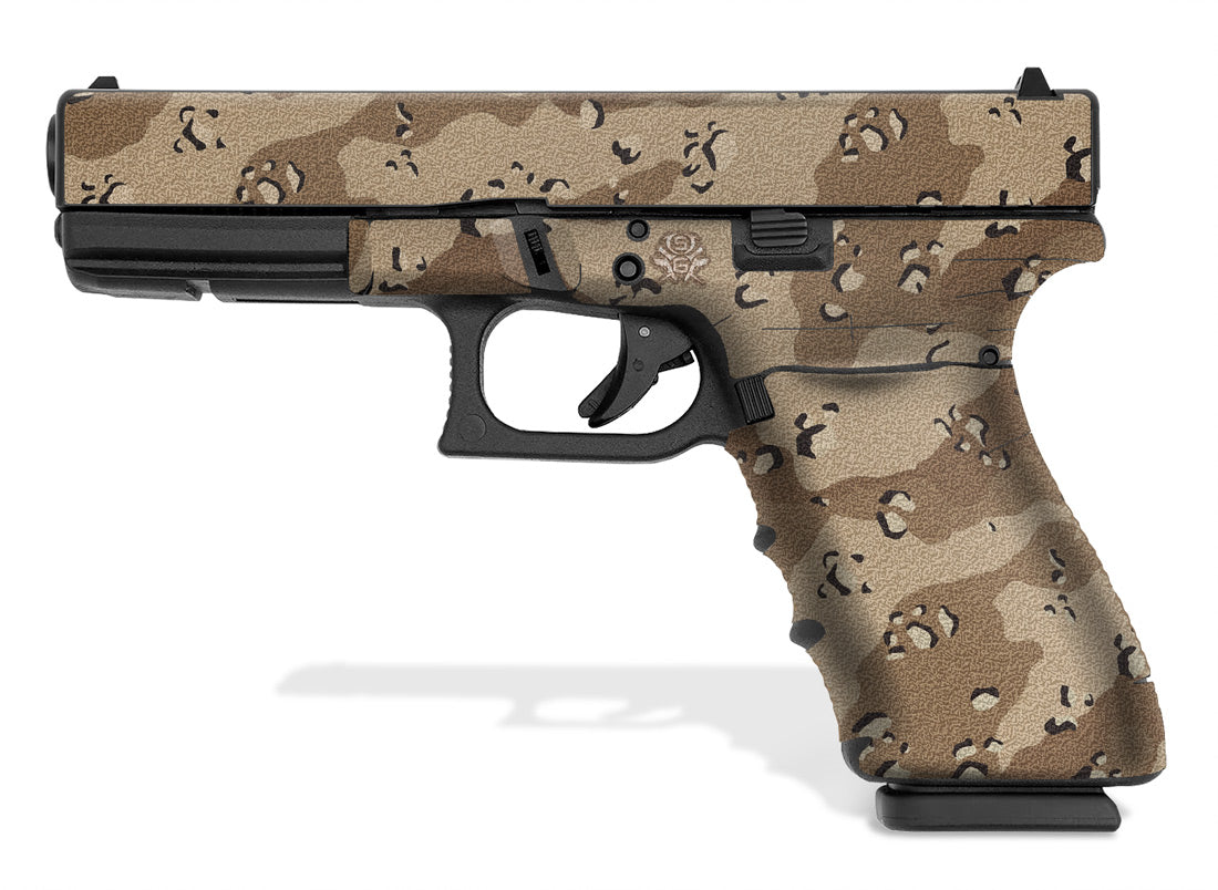 Showgun Tactical Decal Grip for Glock 21 SF – Desert Camo design. Features an amazing rubber-like, textured grip surface for a better hold and more control. Cover just the frame of the G21SF or add grip to the slide also.