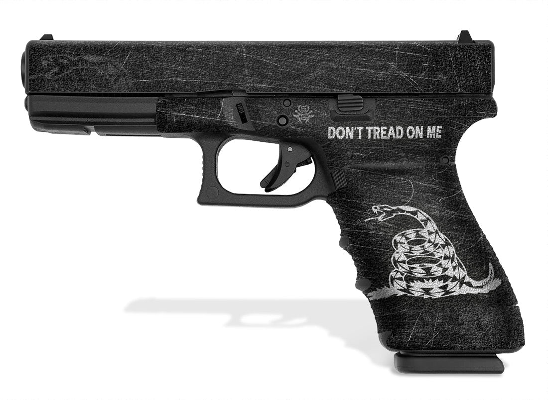 Showgun Tactical Decal Grip for Glock 21 SF – (Black & White) Don’t Tread On Me design. Features an amazing rubber-like, textured grip surface for a better hold and more control. Cover just the frame of the G21 SF or add grip to the slide as well.
