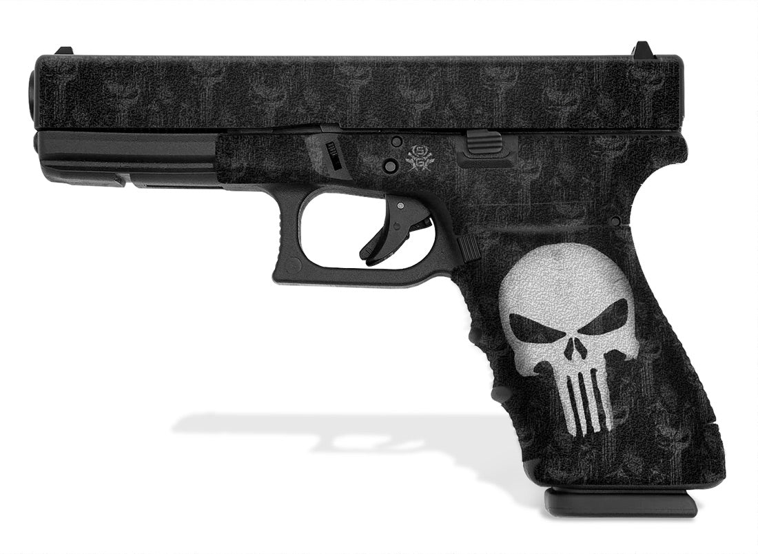 Showgun Tactical Decal Grip for Glock 21 SF – Punisher design. Features an amazing rubber-like, textured grip surface for a better hold and more control. Cover just the frame of the G21 SF or add grip to the slide as well.