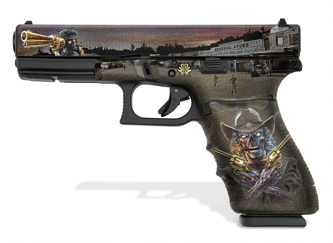 Showgun Tactical Decal Grip for Glock 21 SF – Zombie Outlaw design by Invision Artworks. Cover just the frame of the G21 SF or add grip to the slide as well. Features an amazing rubber-like, textured grip surface for a better hold and more control.