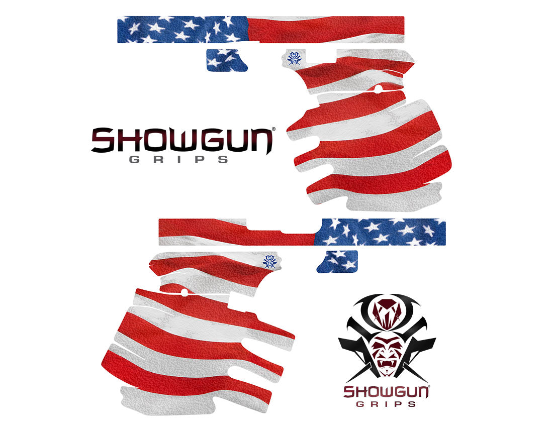 Decal Grip for Gen 3 Glock 22 – Stars & Stripes design. Features a textured, rubber-like grip surface to give you a better grip and more control of your Glock. Cover just the frame or add grip and design to the slide of your G22 as well.