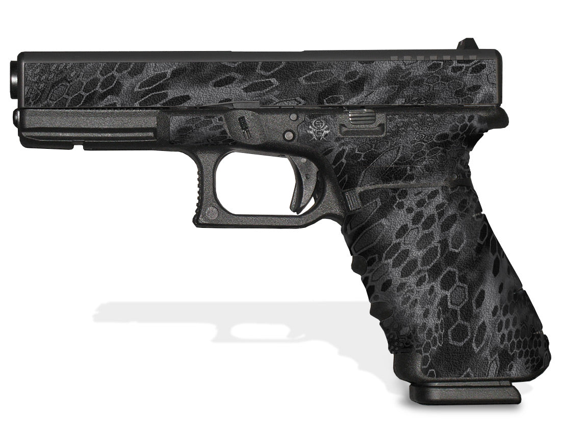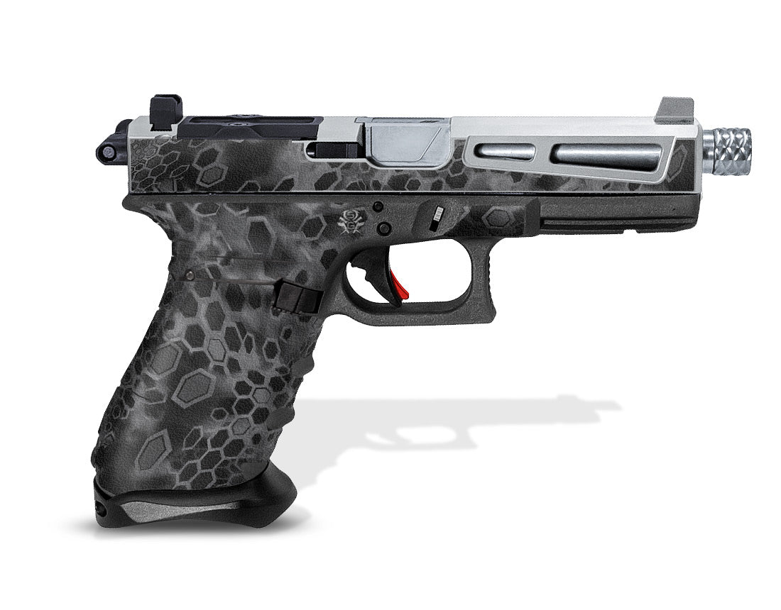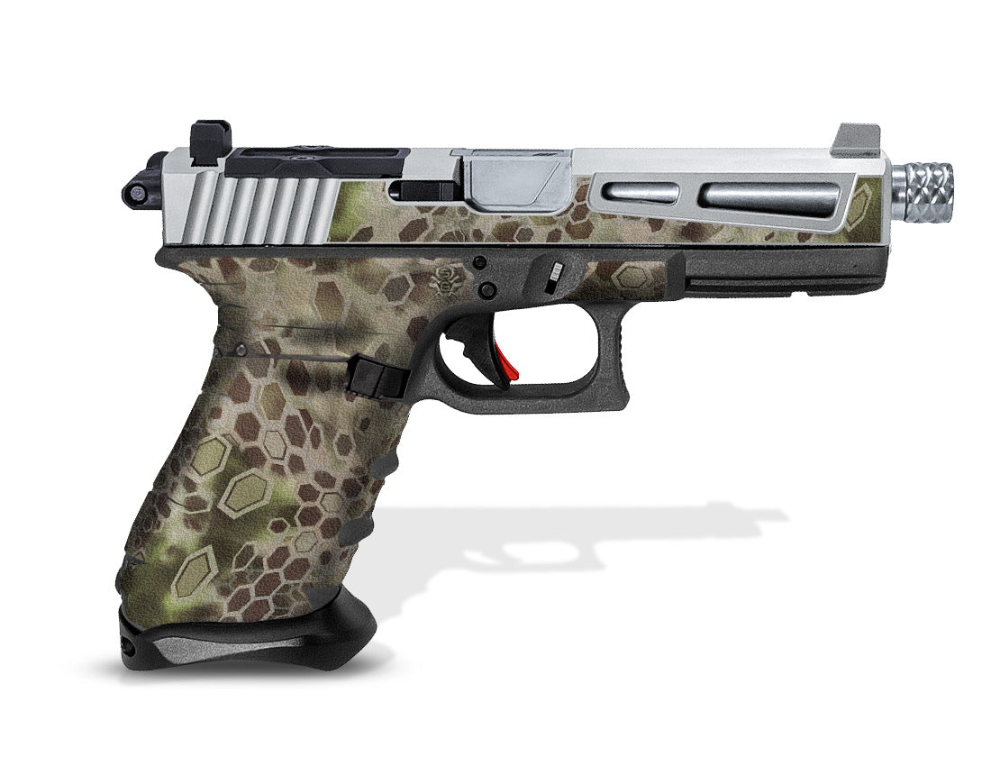 Decal Grip Kit for Glock Gen-4 G22 – Cryptic Camodesign by Invision Artworks. Features a textured, rubber-like grip surface to give you a better grip and more control of your firearm. Cover just the frame or add grip and design to the slide of your Glock 22 as well.