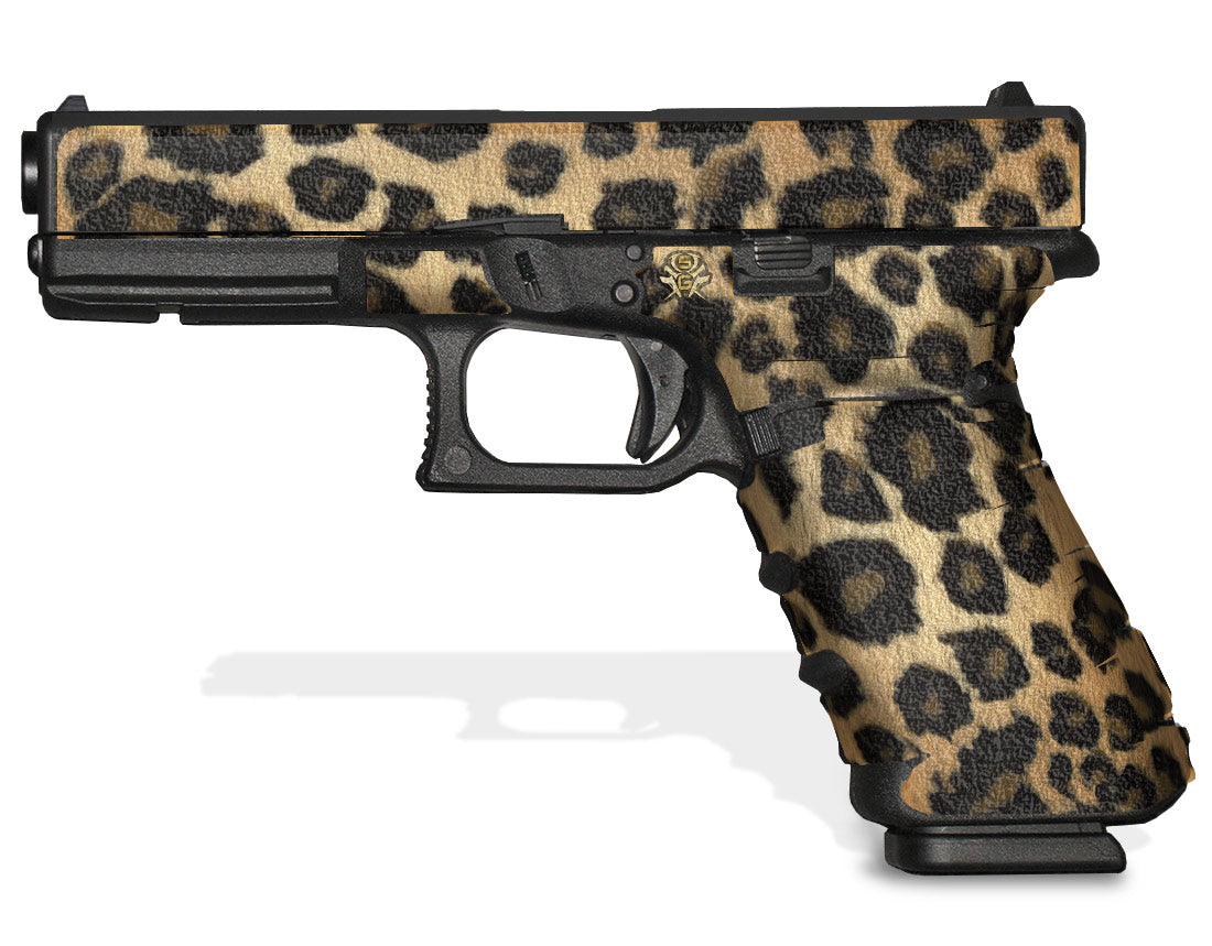 Decal Grip Kit for Gen 4 Glock 22 – Leopard Print design by Showgun Grips. Features a textured, rubber-like grip surface to give you a better grip and more control of your firearm. Cover just the frame or add grip and design to the slide of your G22 as well.