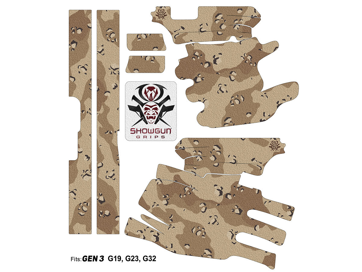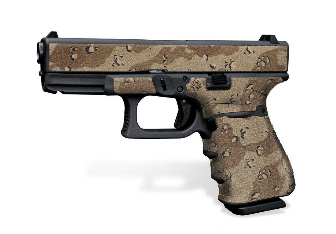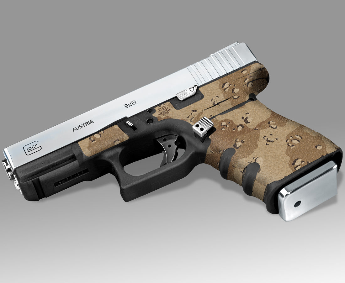 Decal Grip for Gen 3 Glock 23 – Desert Camo – Features a textured, rubber-like grip surface to give you a better grip and more control of your firearm. Cover just the frame or add grip and style to your slide as well.