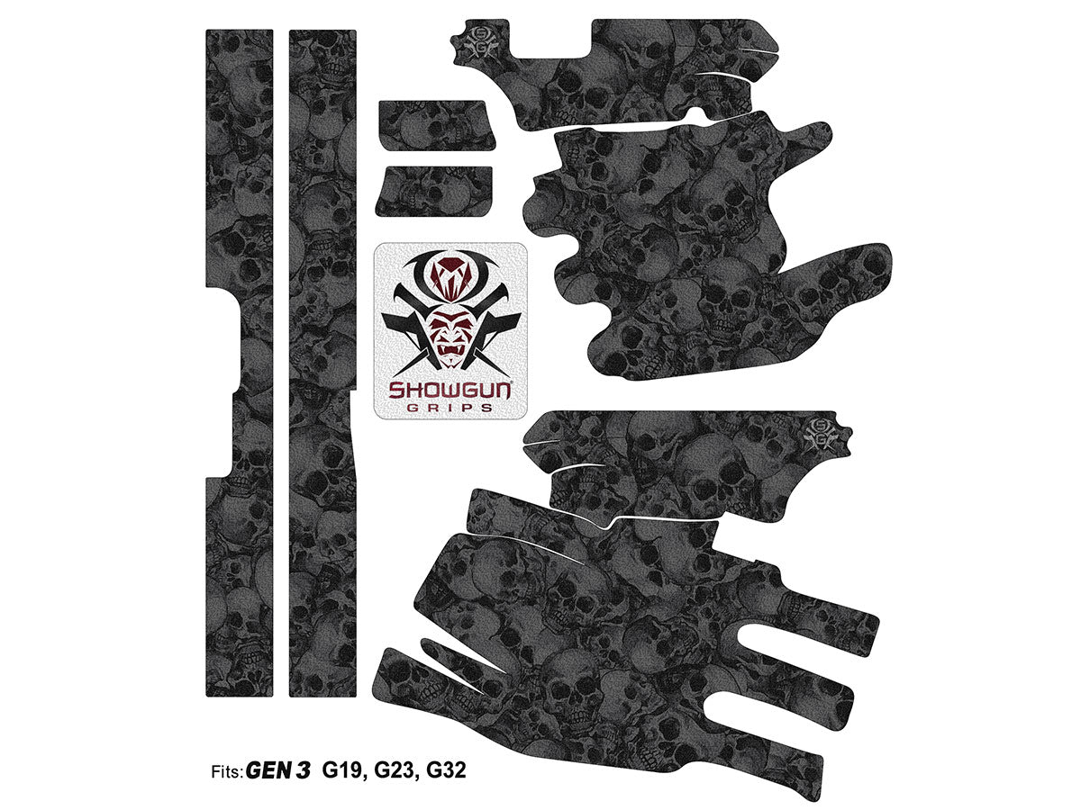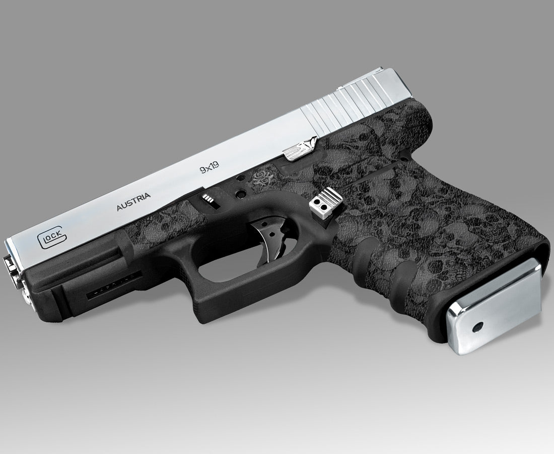 Decal Grip Kit for Glock Gen-3 G23 – Skull Collector design by Invision Artworks. Features a textured, rubber-like grip surface to give you a better grip and more control of your firearm. Cover just the frame or add grip and design to the slide of your Glock 23 as well.