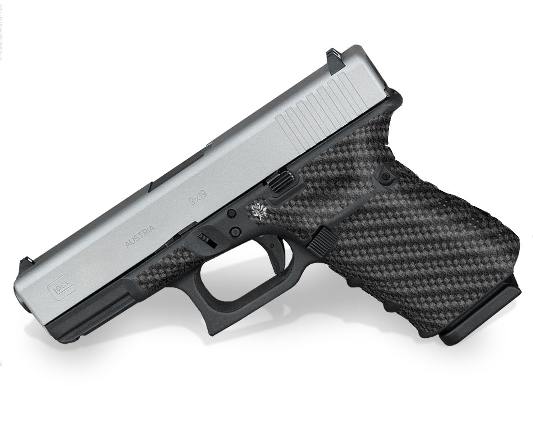 Decal Grip for Gen 4, Glock 23 – Carbon Fiber design. Features a textured, rubber-like surface to give you a better grip and more control of your firearm. You can cover just the frame of your 23 or add grip to the slide as well. Easy, do-it-yourself installation.