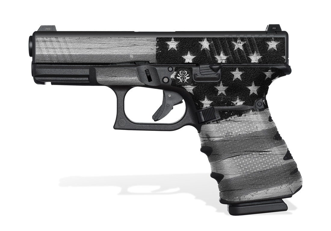 Subdued Flag Decal Grip for Gen 4 Glock 23. Features a textured, rubber-like surface to give you a better grip and more control of the firearm. Cover just your G23 frame or add grip and design to your slide as well.
