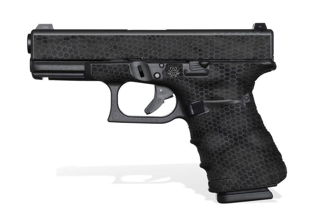 Decal Grip for Gen 4 Glock 23 – Features a textured, rubber-like grip surface to give you a better grip and more control. Digital Snakeskin design by Invision Artworks. Cover just the frame or add grip and design to the slide of your G23 as well.