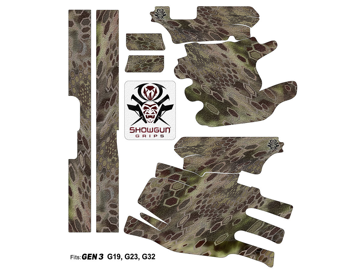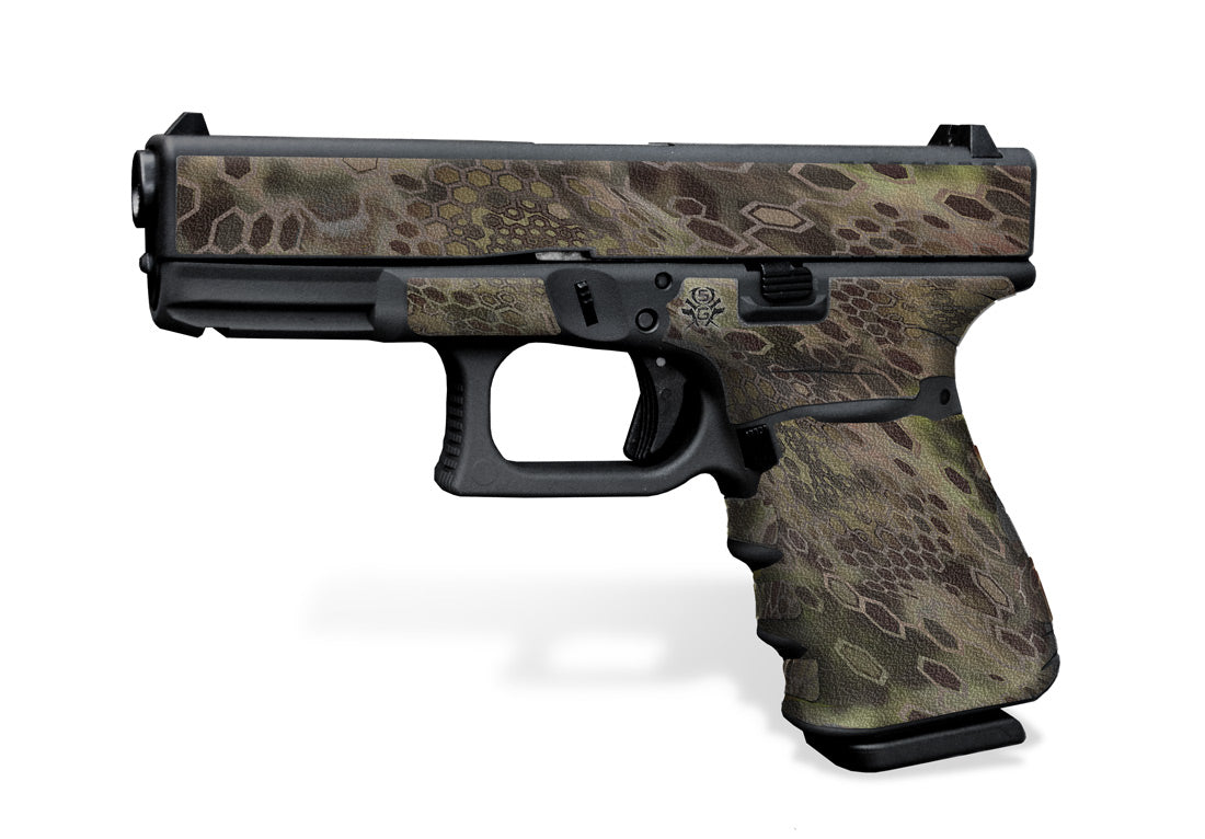 Decal Grip Kit for Glock Gen-3 G23 – Cryptic Camo design by Invision Artworks. Features a textured, rubber-like grip surface to give you a better grip and more control of your firearm. Cover just the frame or add grip and design to the slide of your Glock 23 as well.