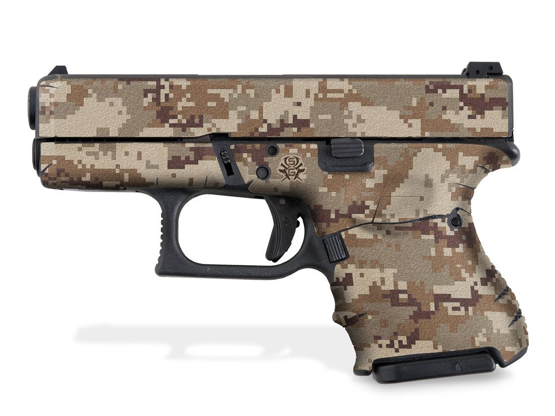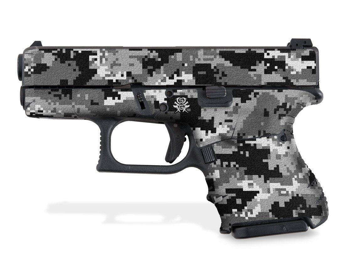 Decal Grip Kit for G27 – Digital Camo design. Provides a better grip on the short frame of the Glock 27, giving you more control. Features a textured, rubber-like grip surface. Cover just the frame or add grip the slide as well.
